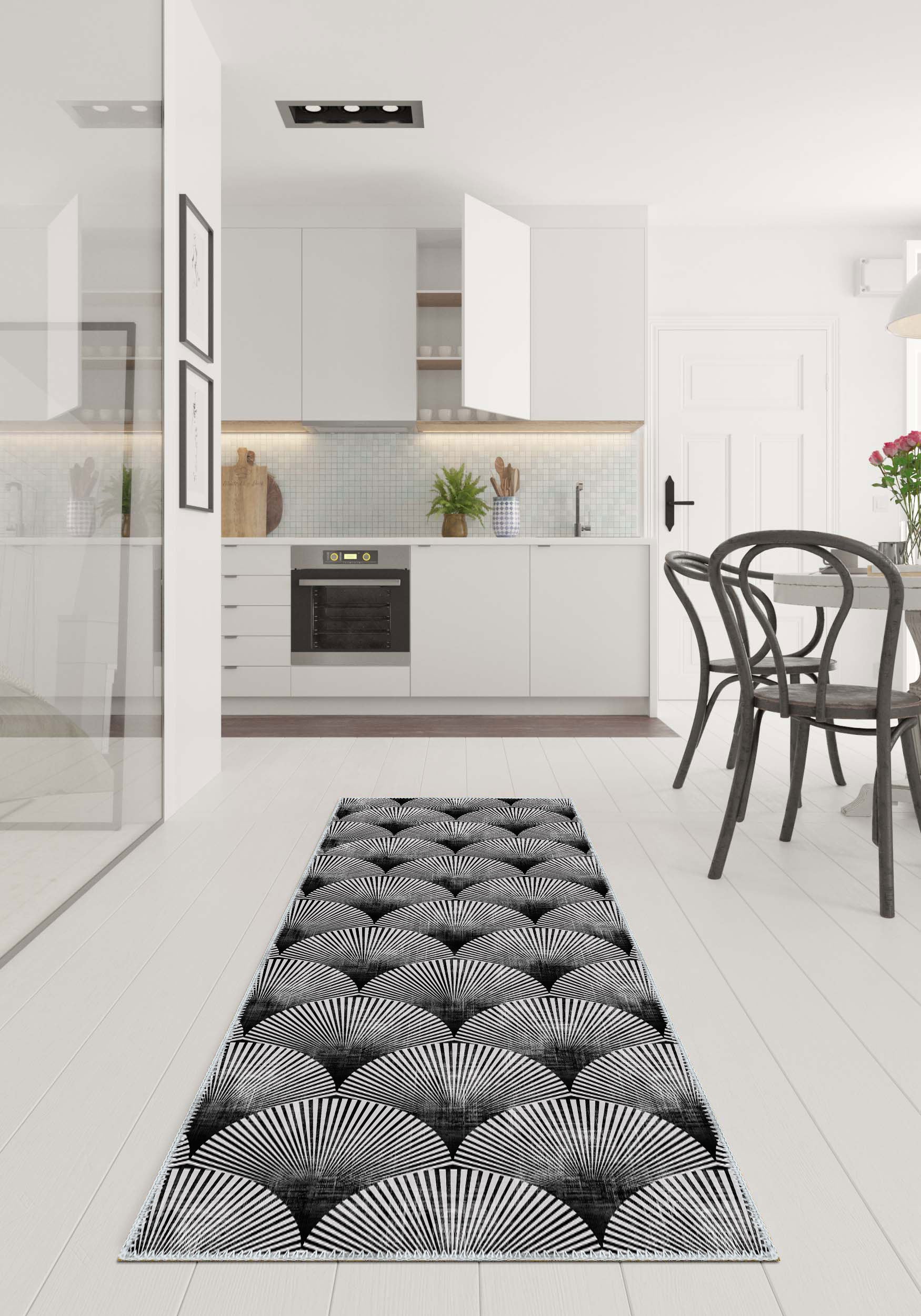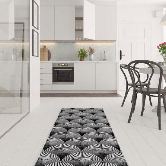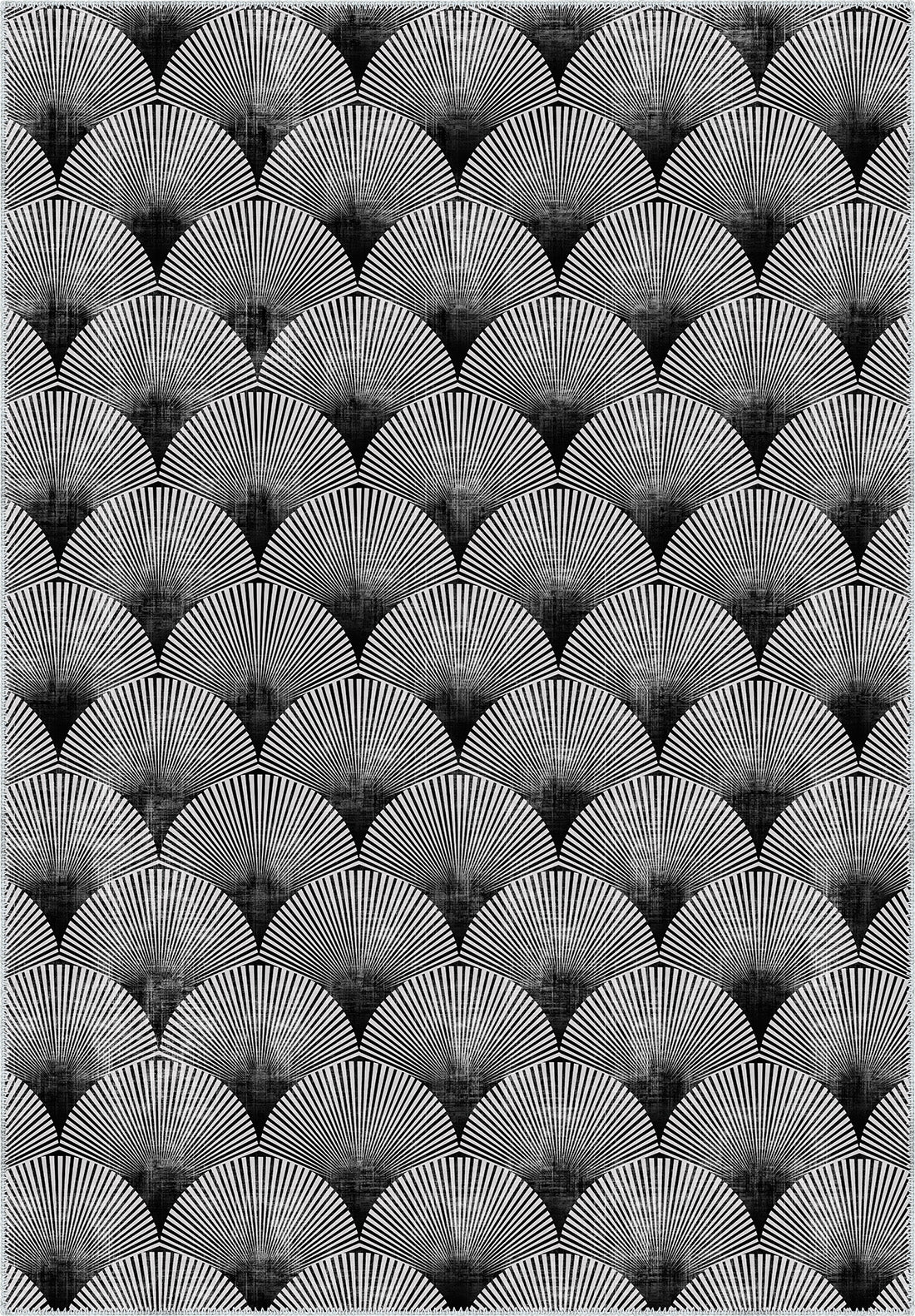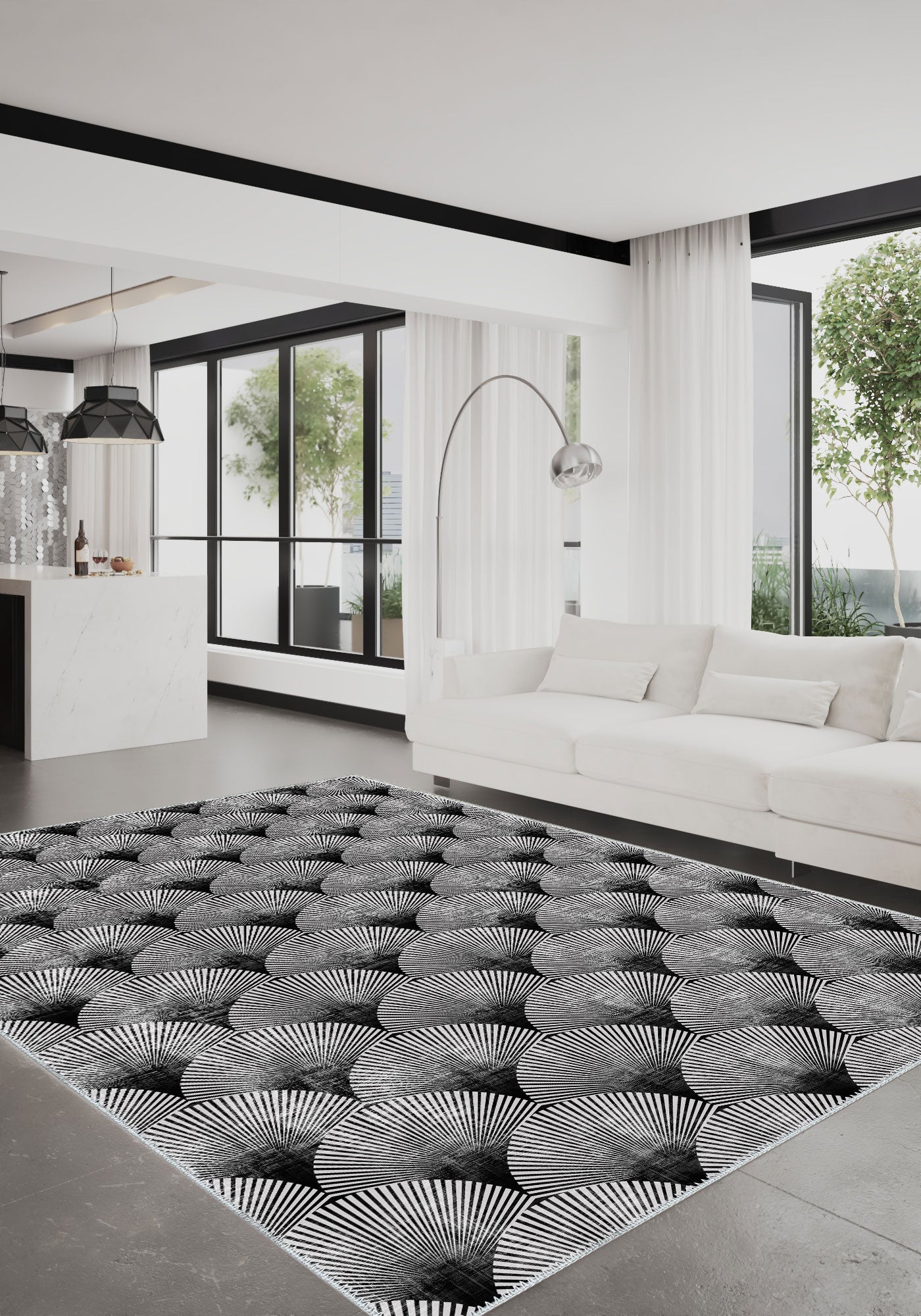 Transform your living space with the Addison Geometric Anthracite Rug. This rug features a striking geometric fan pattern in monochromatic tones that offers a modern, sleek look for any room. Crafted from durable, washable materials, it combines style and practicality effortlessly.