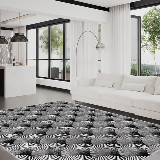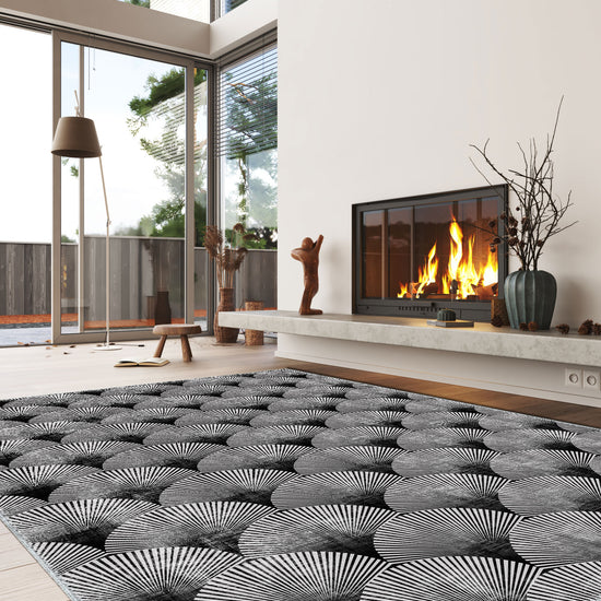 - Geometric Elegance: The bold fan pattern provides a dynamic visual effect, making this rug a standout feature in any home.