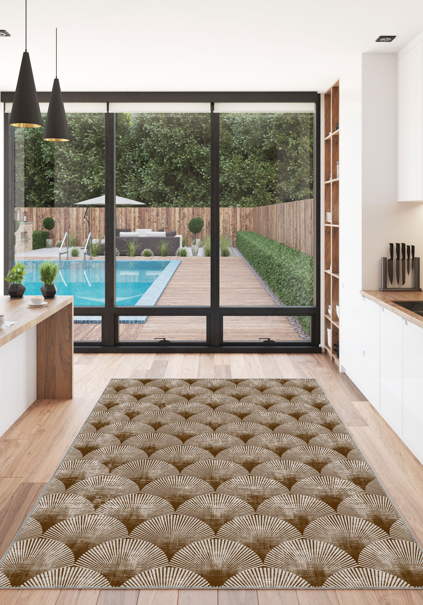 Introduce a modern touch to your home with the Addison Modern Brown Rug. Featuring a fan-like geometric pattern, this rug is perfect for those seeking a blend of style and practicality. With its warm brown tones and unique design, it adds a contemporary flair to any space while maintaining a versatile look.