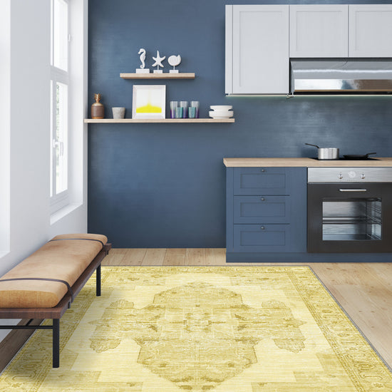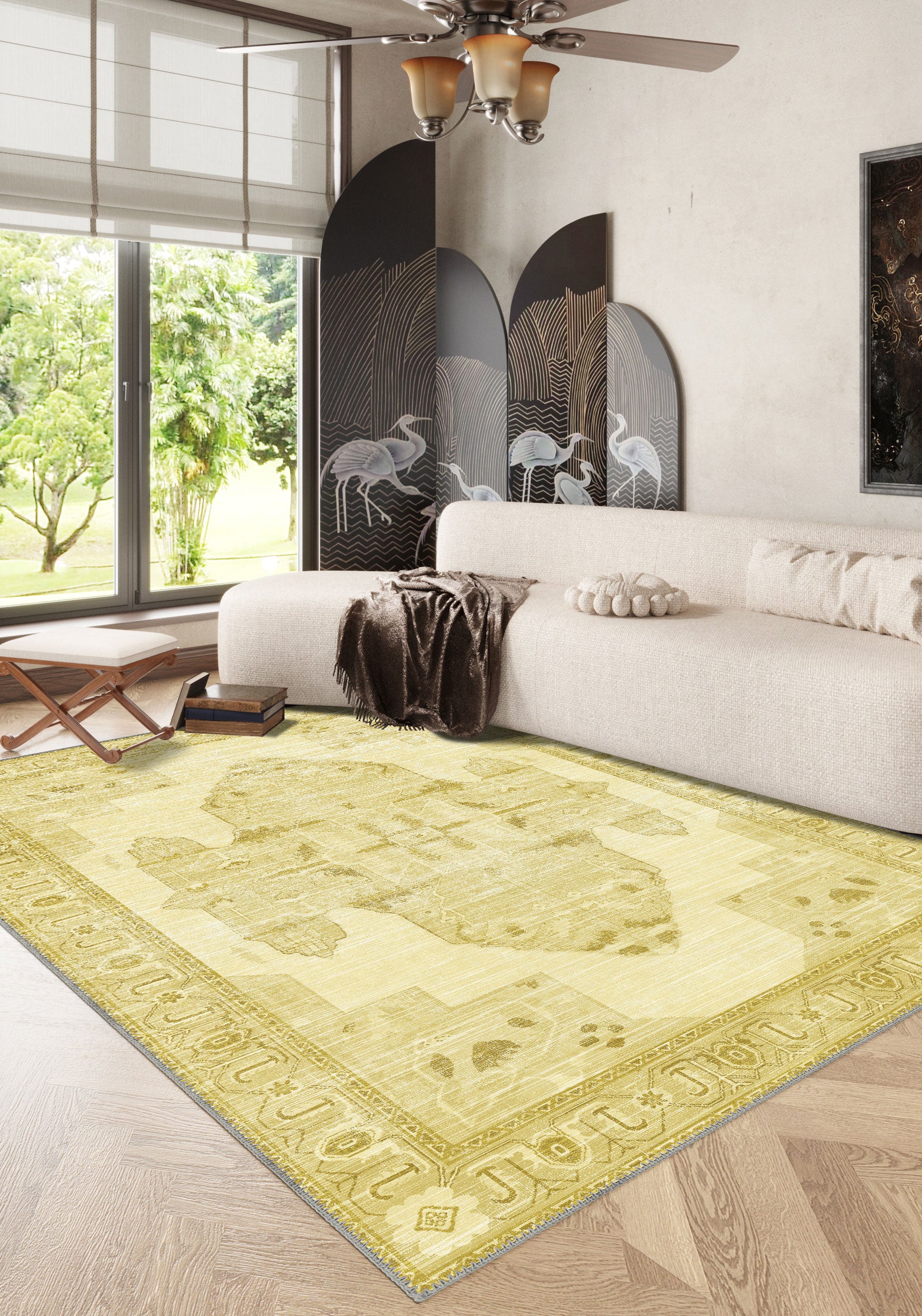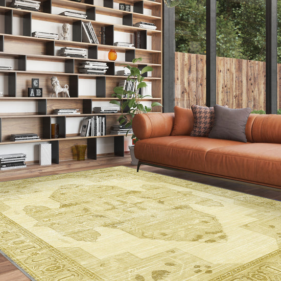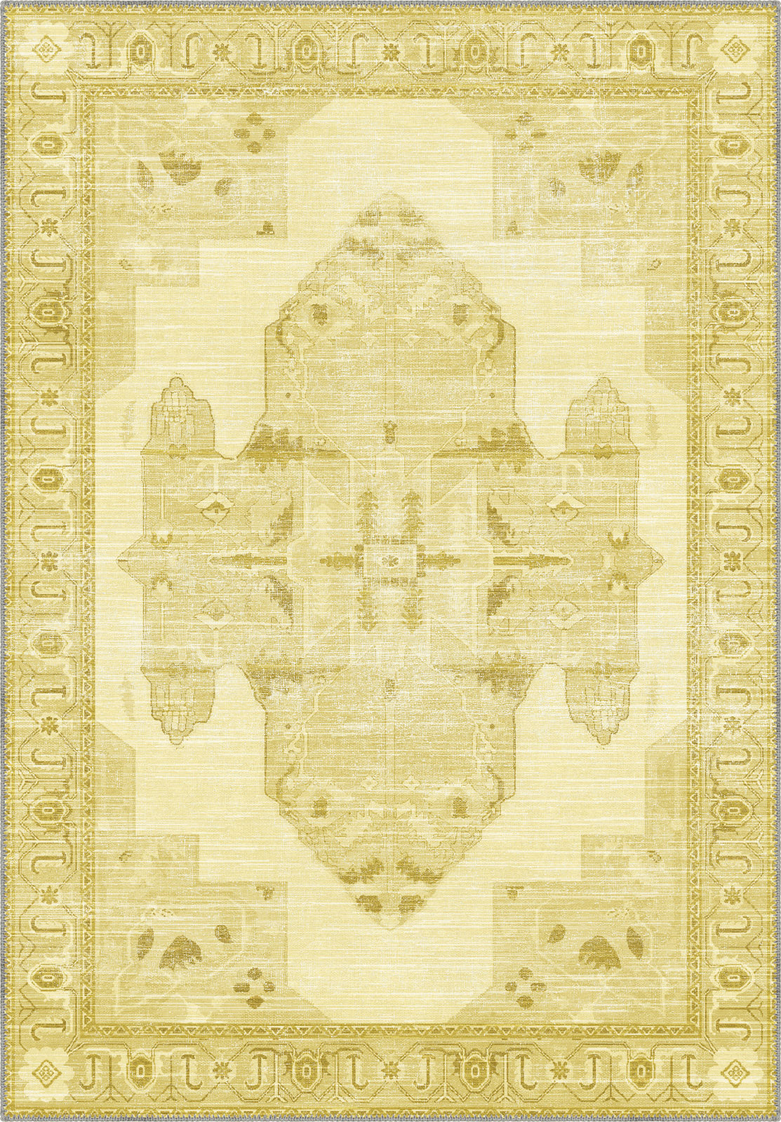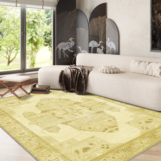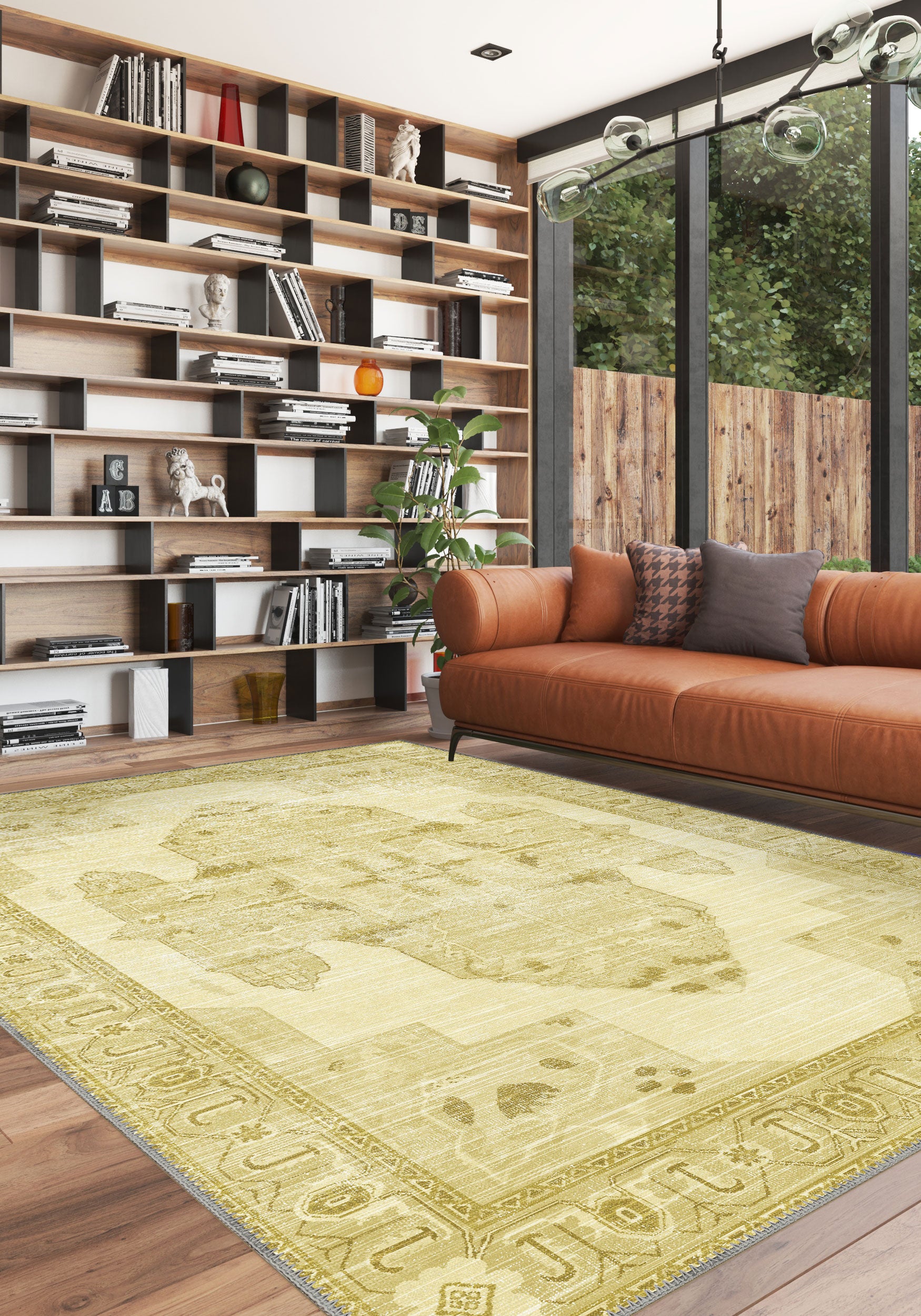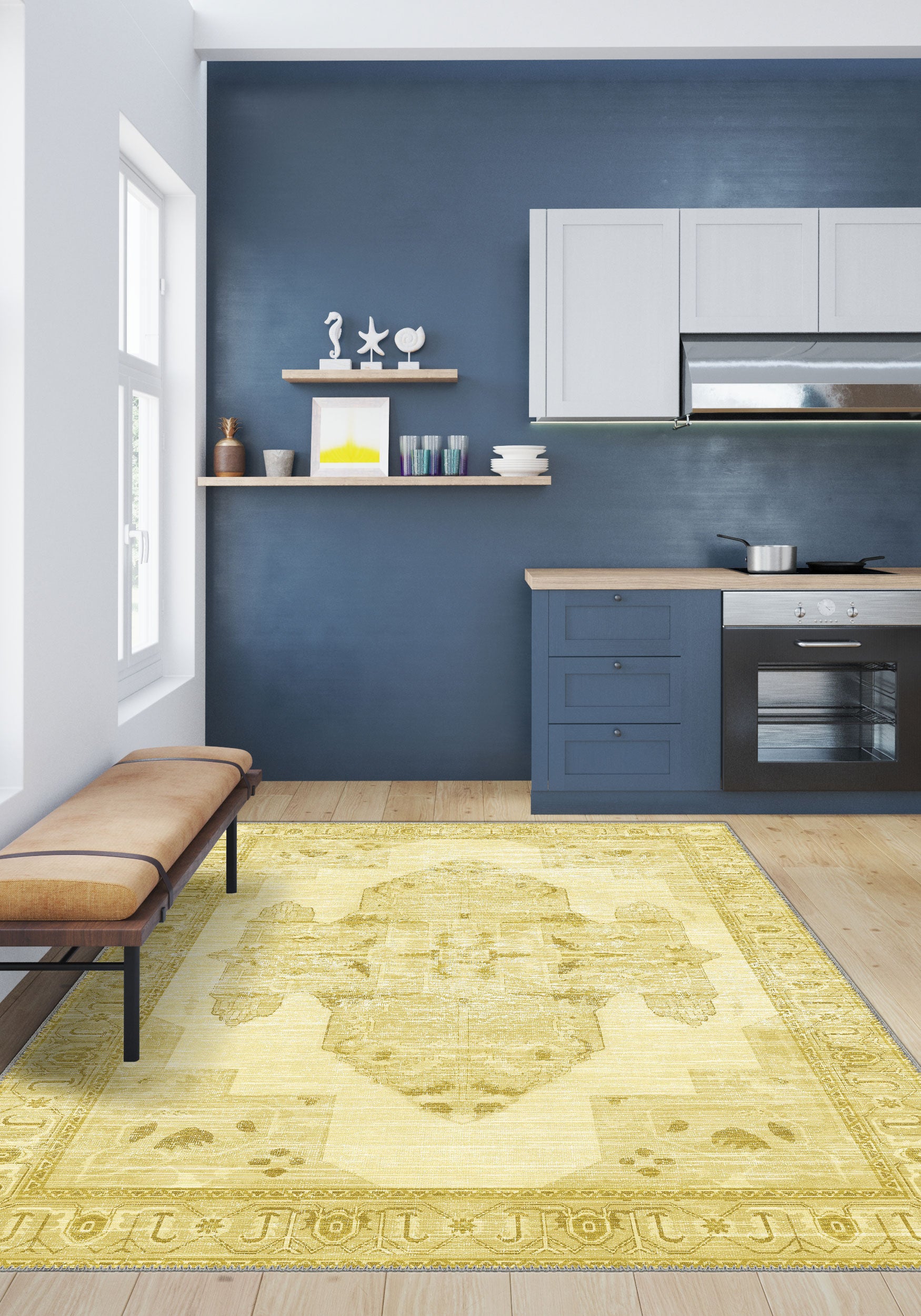 Adrian Yellow Oriental Washable Rug – Brighten Your Space with Timeless Elegance