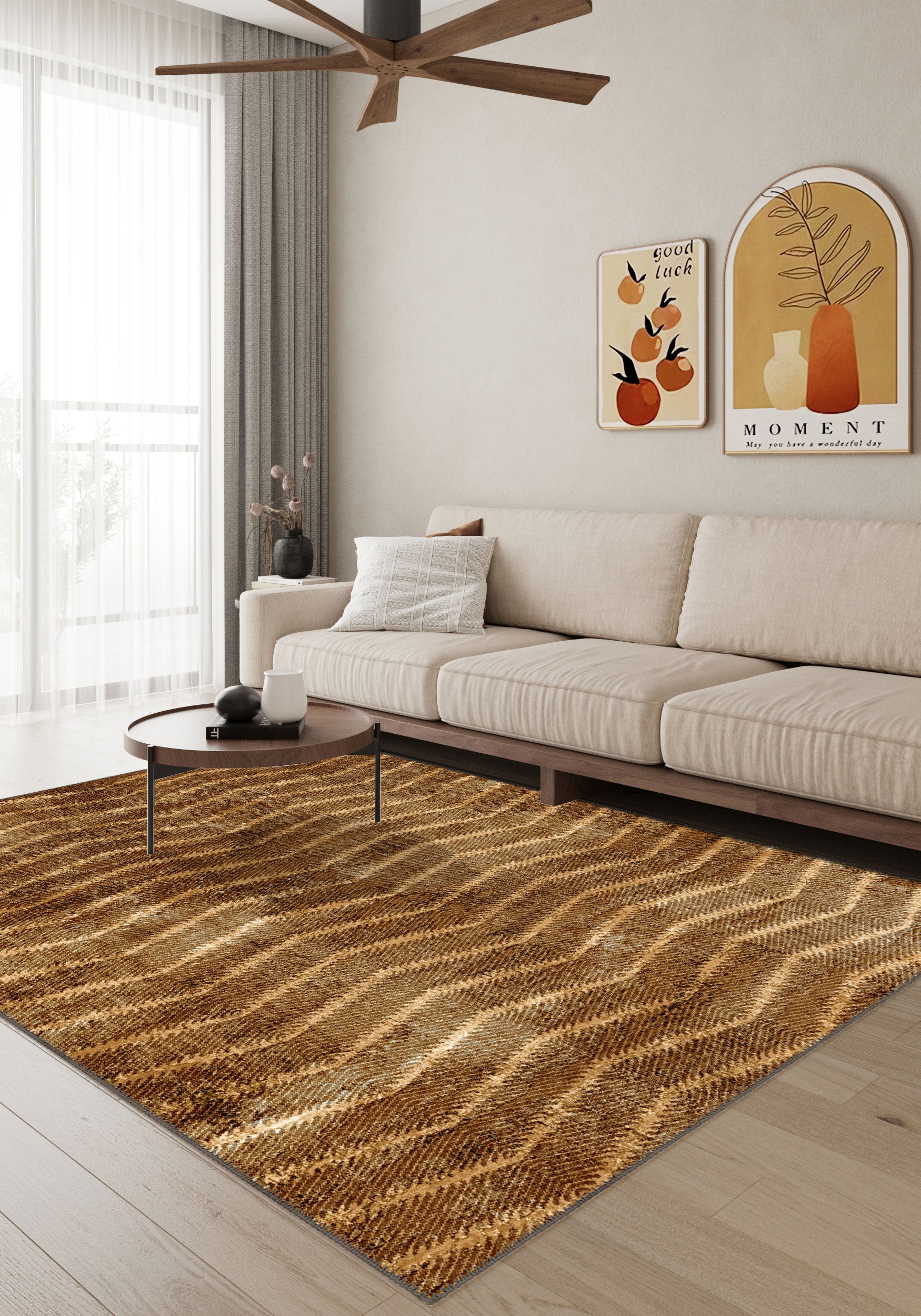 - Living Rooms & Bedrooms: Bring a cozy and sophisticated element to your living room or bedroom with the warm brown tones of this rug.