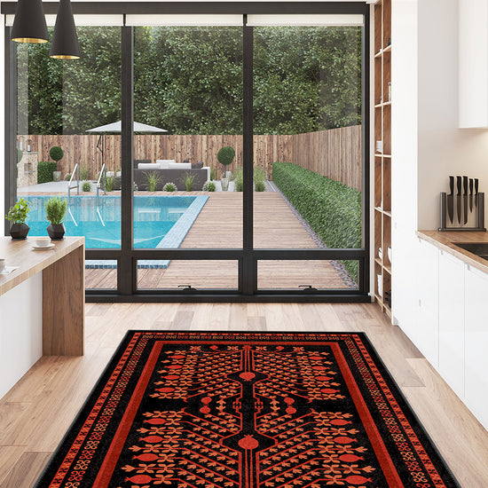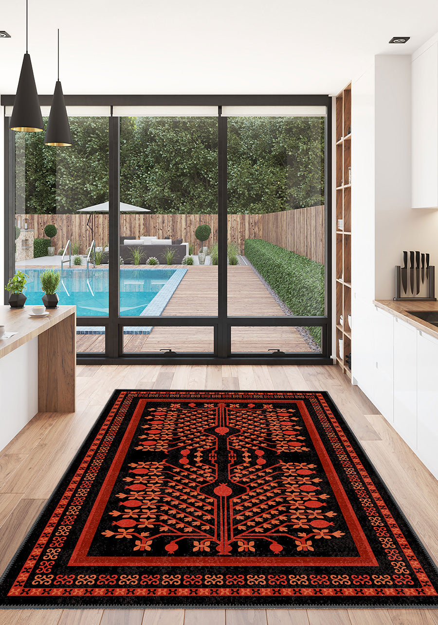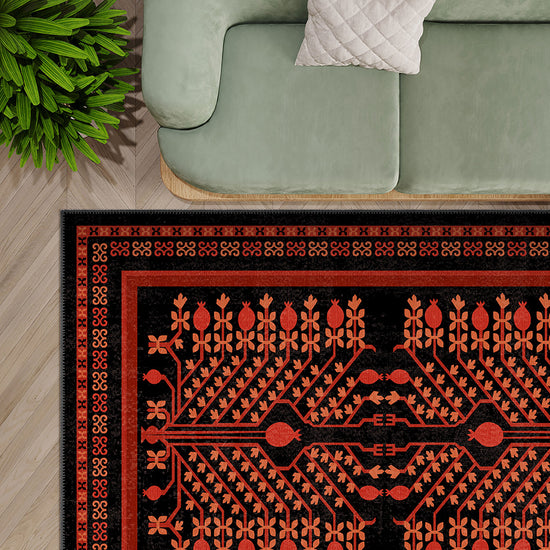 Anara Red Black Pomegranate Rug – A Bold Fusion of Tradition and Elegance