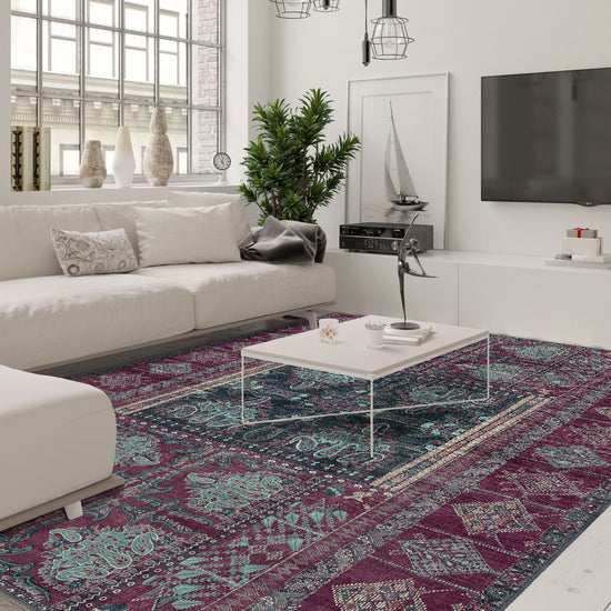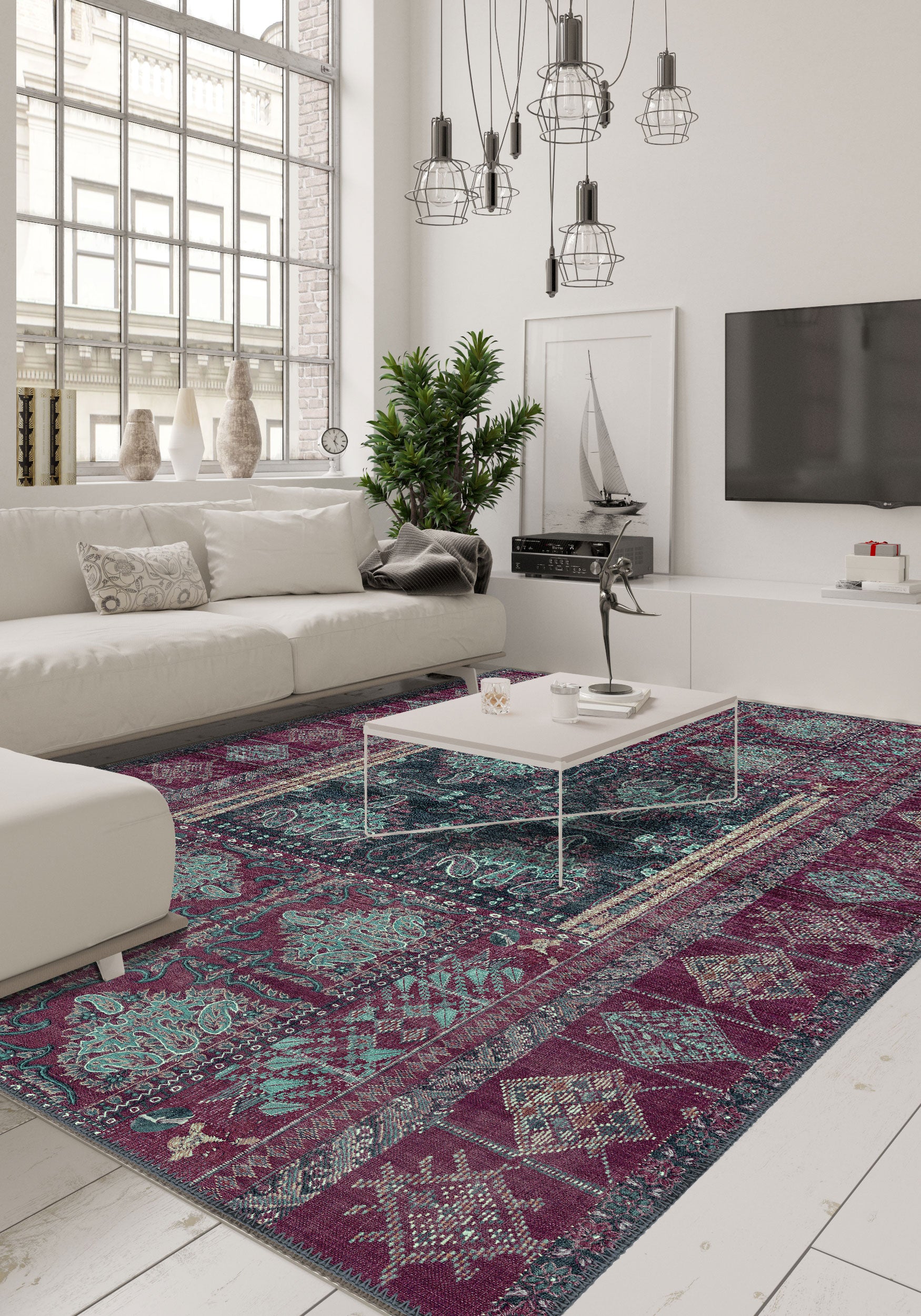 The Andrew Burgundy Purple Vintage Washable Rug brings timeless sophistication to your home with its rich burgundy and purple hues and intricate vintage-inspired design. This rug is not only beautiful but also practical, making it the perfect choice for high-traffic areas and homes that need both style and durability.