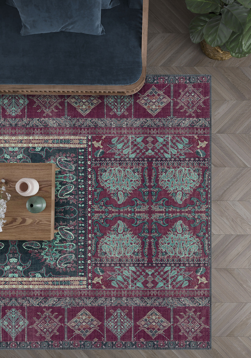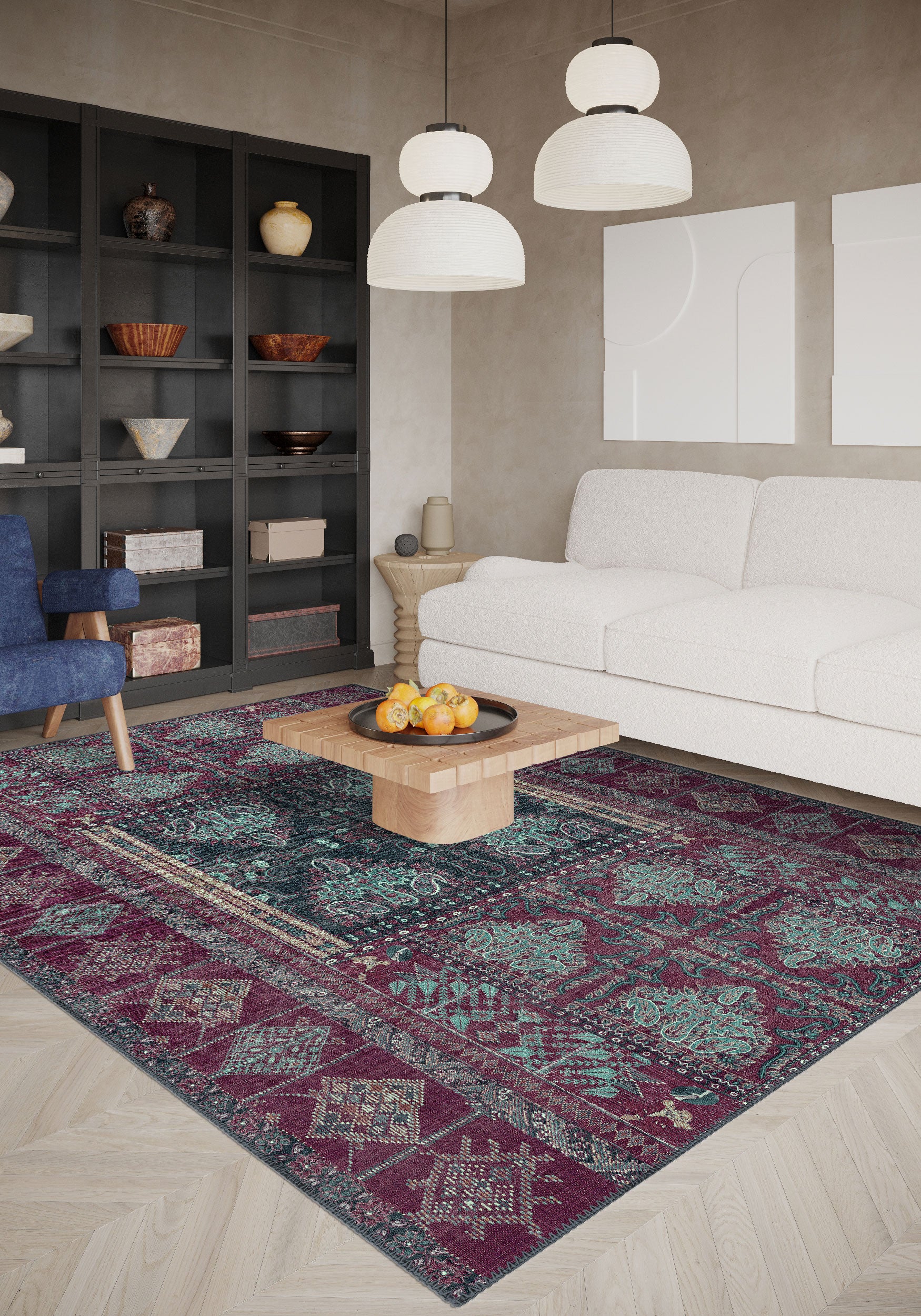Andrew Burgundy Purple Vintage Washable Rug – A Blend of Classic Elegance and Modern Convenience