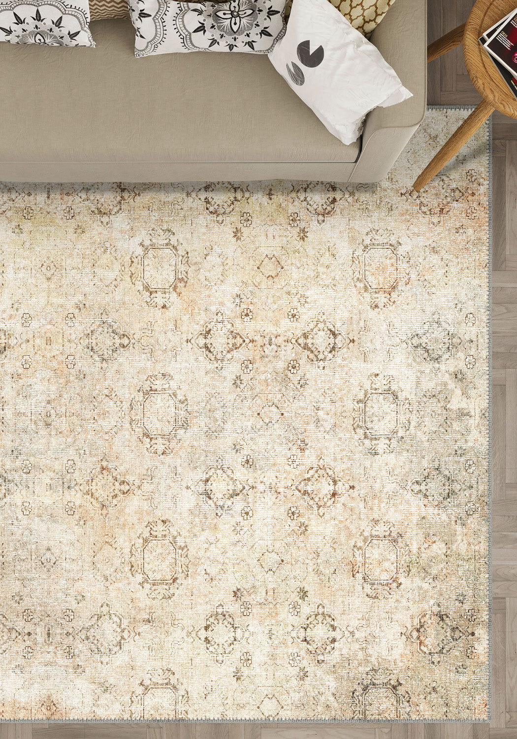 Ariana Cream Boho Washable Rug – Vintage Elegance Meets Modern Practicality