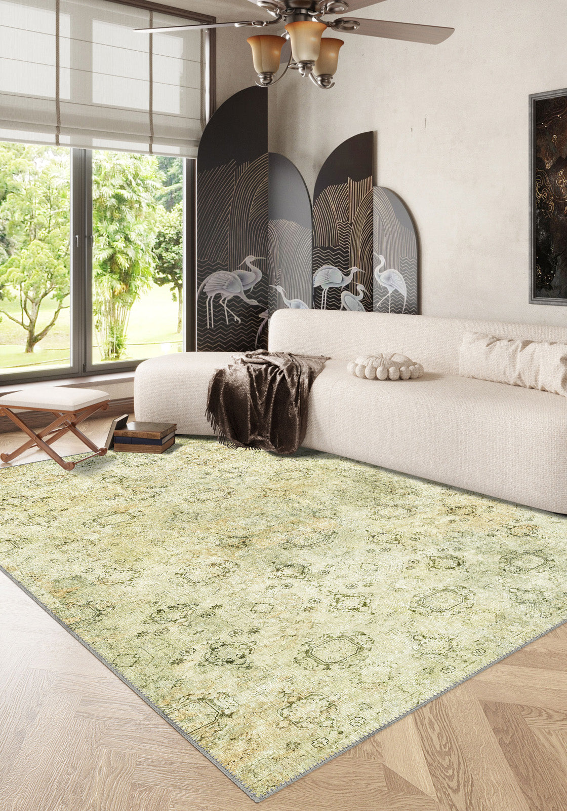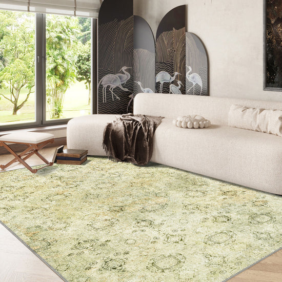Ariana Green Vintage Washable Rug – Timeless Elegance for Modern Interiors