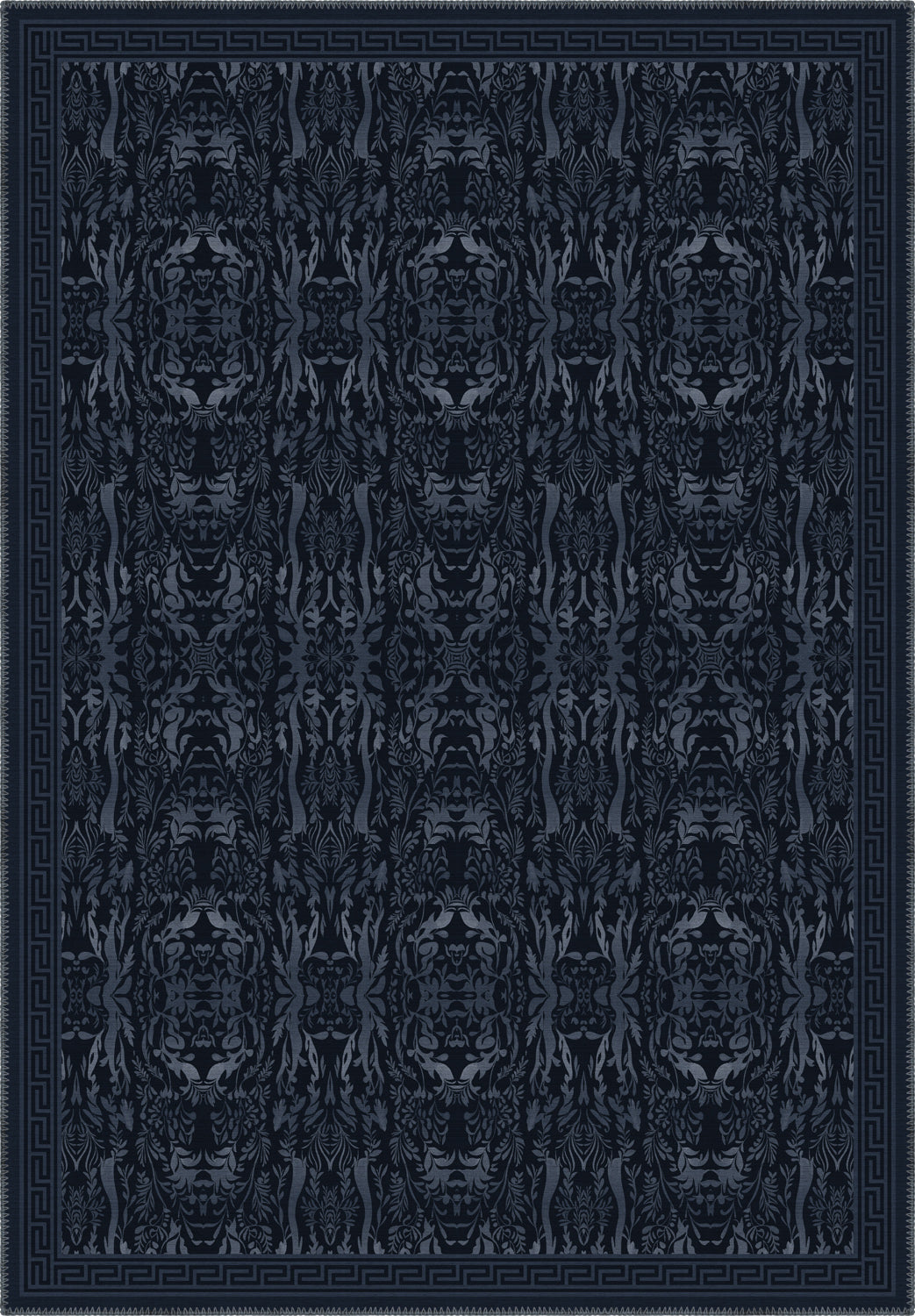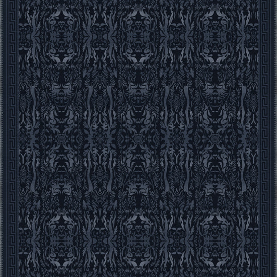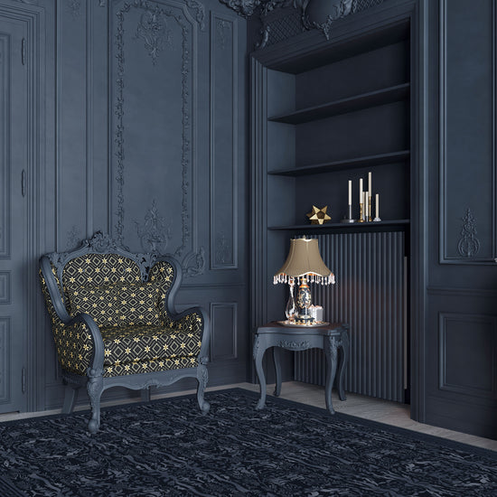 Aveline Deep Navy Damask Rug – A Midnight Whisper of Elegance