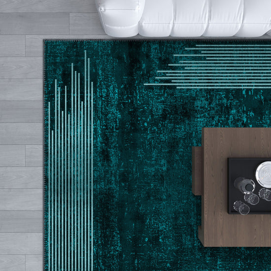 Ayden Teal Washable Rug – Modern Elegance with a Splash of Color