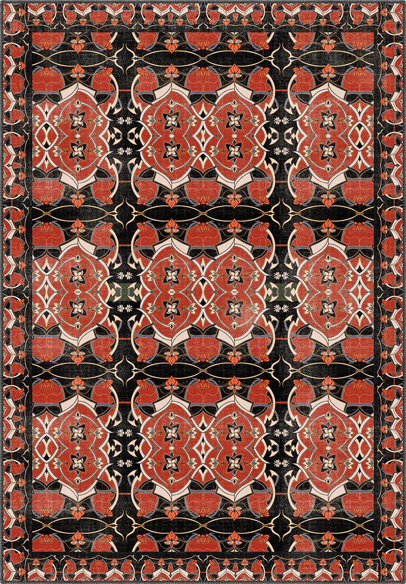 The Azar Coral Eclectic Rug isn’t just floor decor—it’s a full-blown performance of intricate symmetry, coral richness, and moody noir tones. Inspired by oriental motifs and wrapped in a dramatic palette of black, ivory, and terracotta-coral, it’s the kind of piece that instantly elevates a space from ordinary to atmospheric. The details? Exquisite. The drama? Unapologetic.