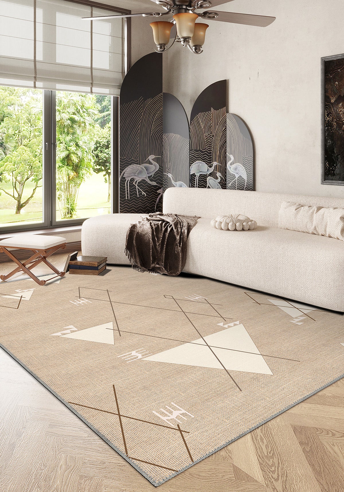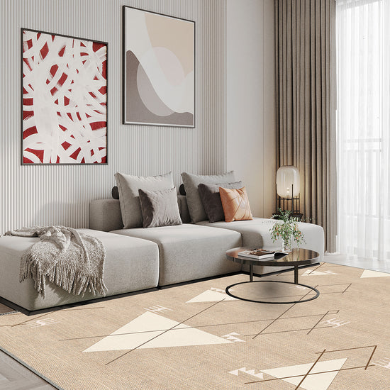 Perfect for Japandi, Scandinavian, or neutral-toned interiors, this rug offers calm geometry and warm, earthy grounding. Style it under a sculptural coffee table or layer it with natural woods and linens for an organic-luxury look.