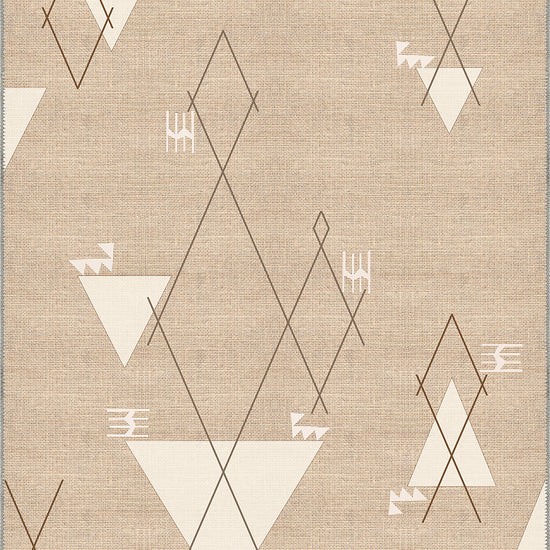 - Neutral beige base with taupe, ivory, and brown linear motifs