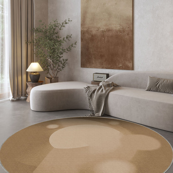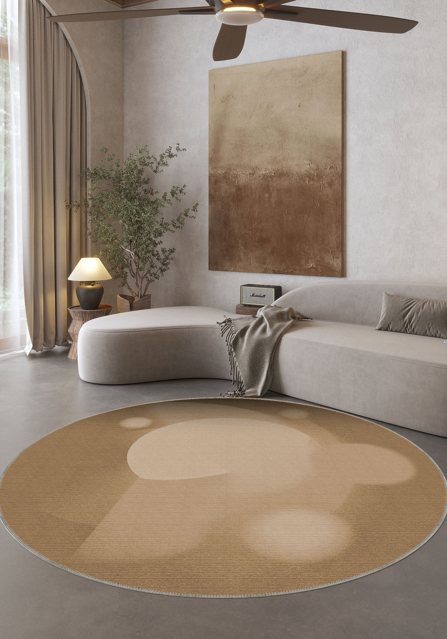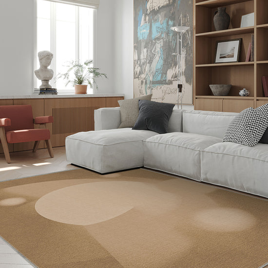 - Abstract Design: The Benjamin Brown rug showcases a captivating abstract pattern, with soft circular shapes that create a sense of movement and balance.