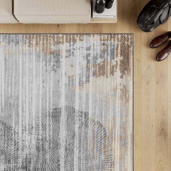 - Neutral Color Palette: A sophisticated blend of greys, beiges, and taupes gives this rug a subtle yet stylish appeal.