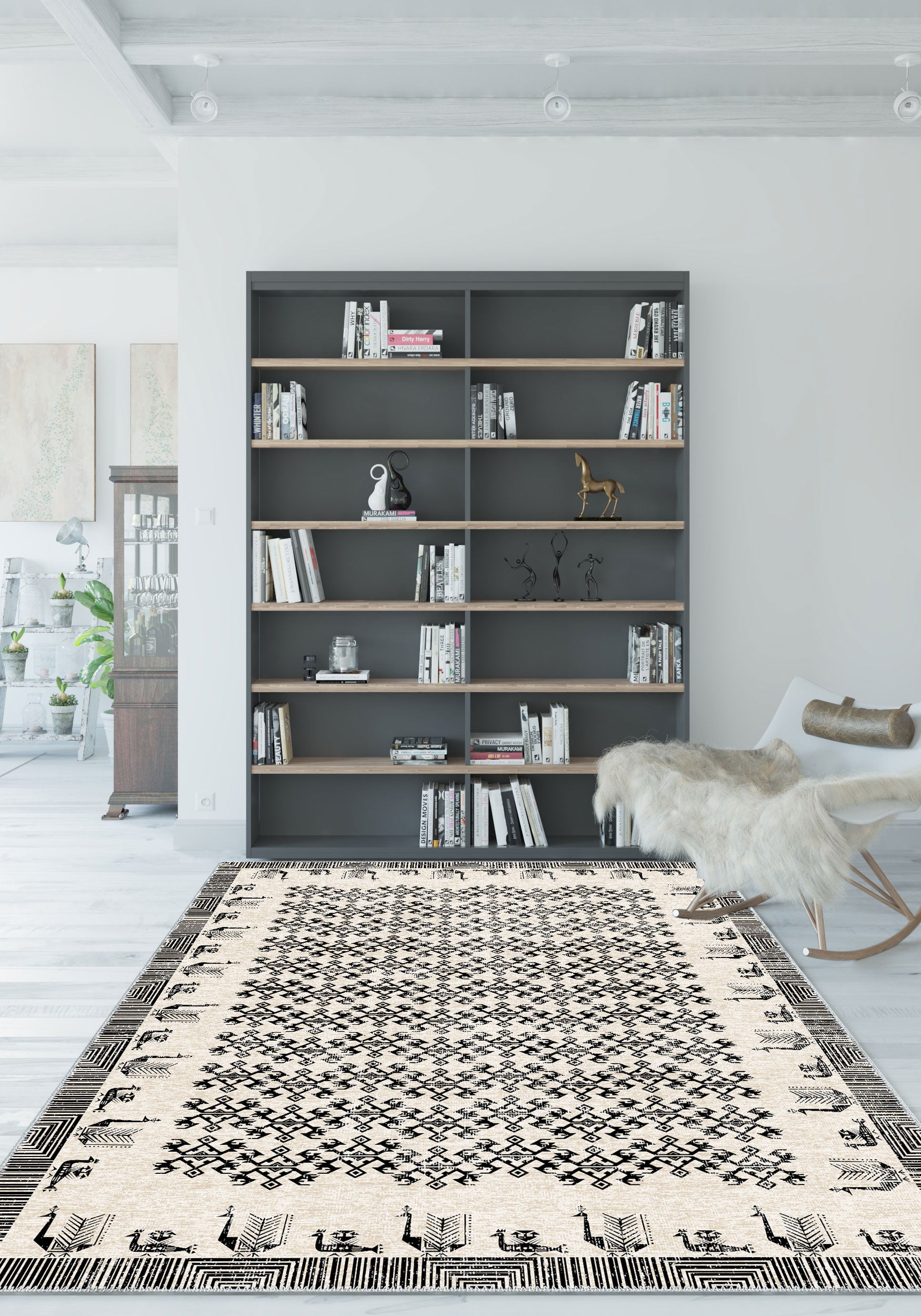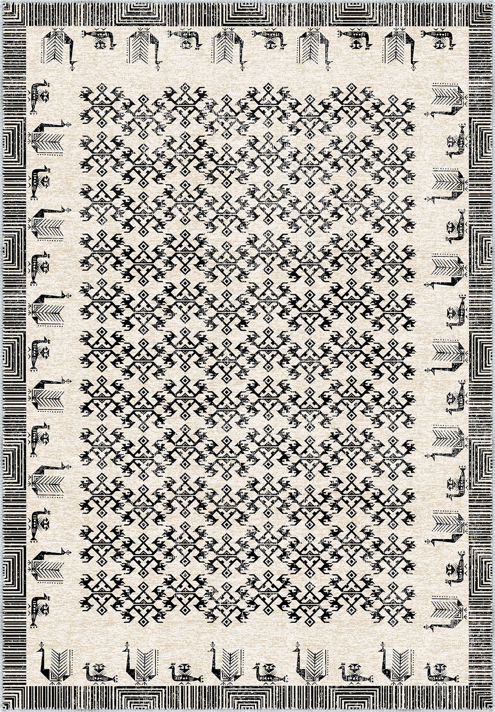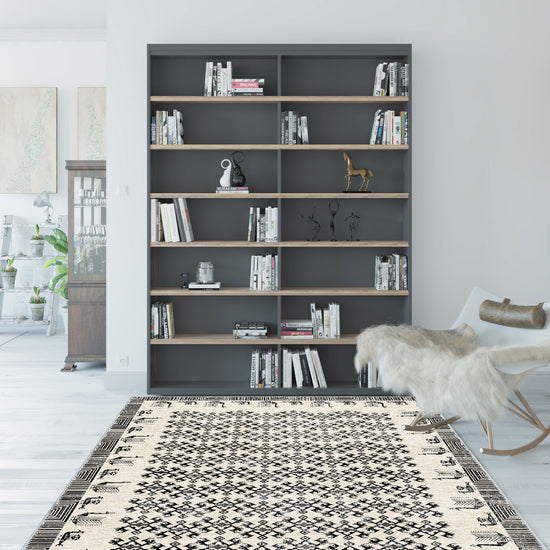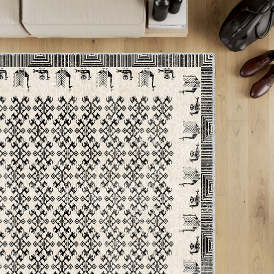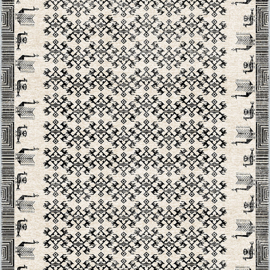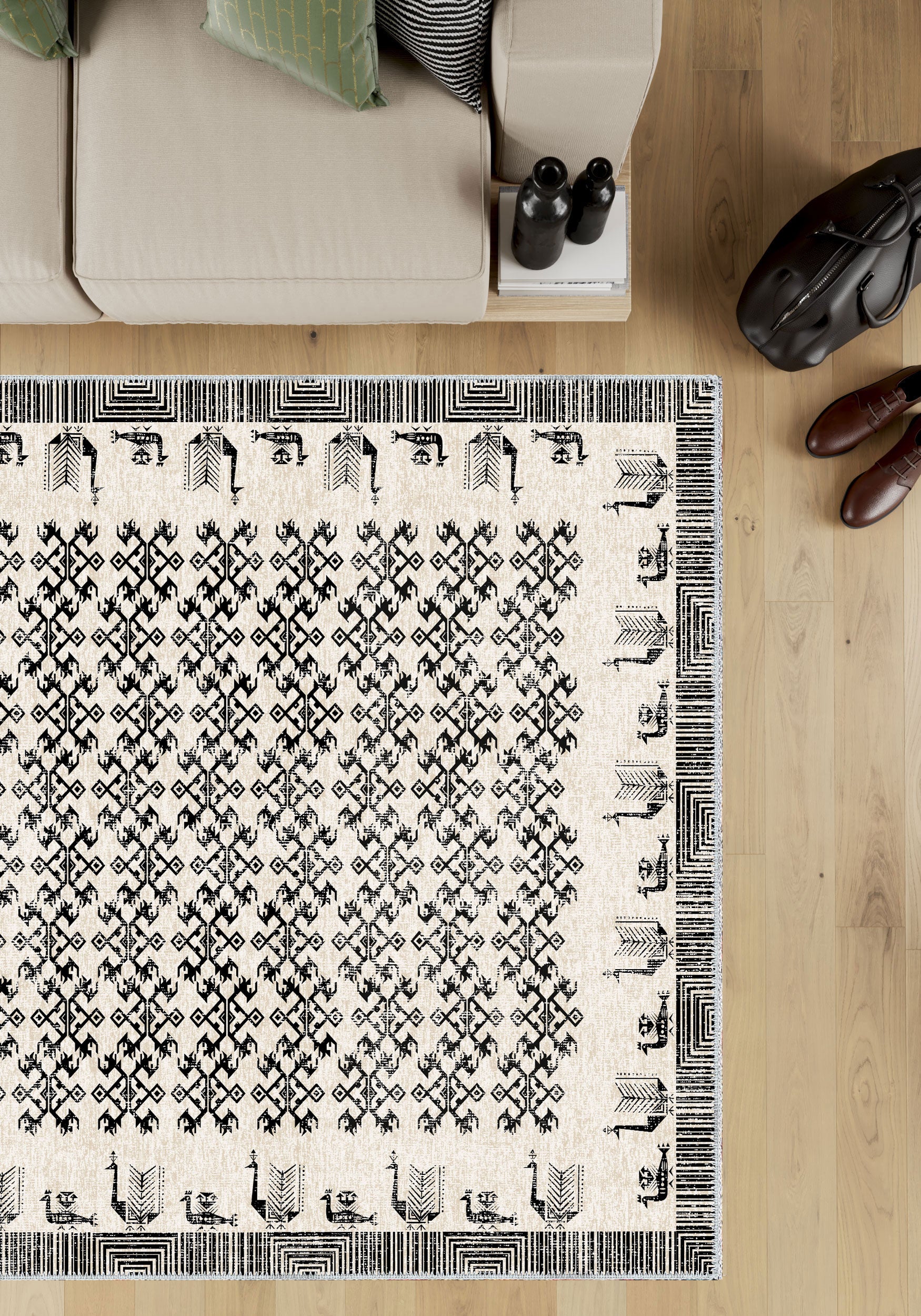 - Modern Interpretation: While rooted in heritage, this rug’s black-and-white color palette and minimalist lines offer a contemporary twist on a time-honored design.