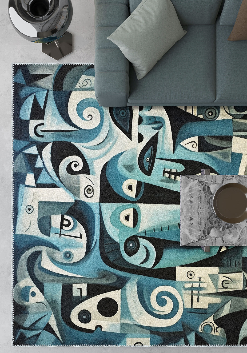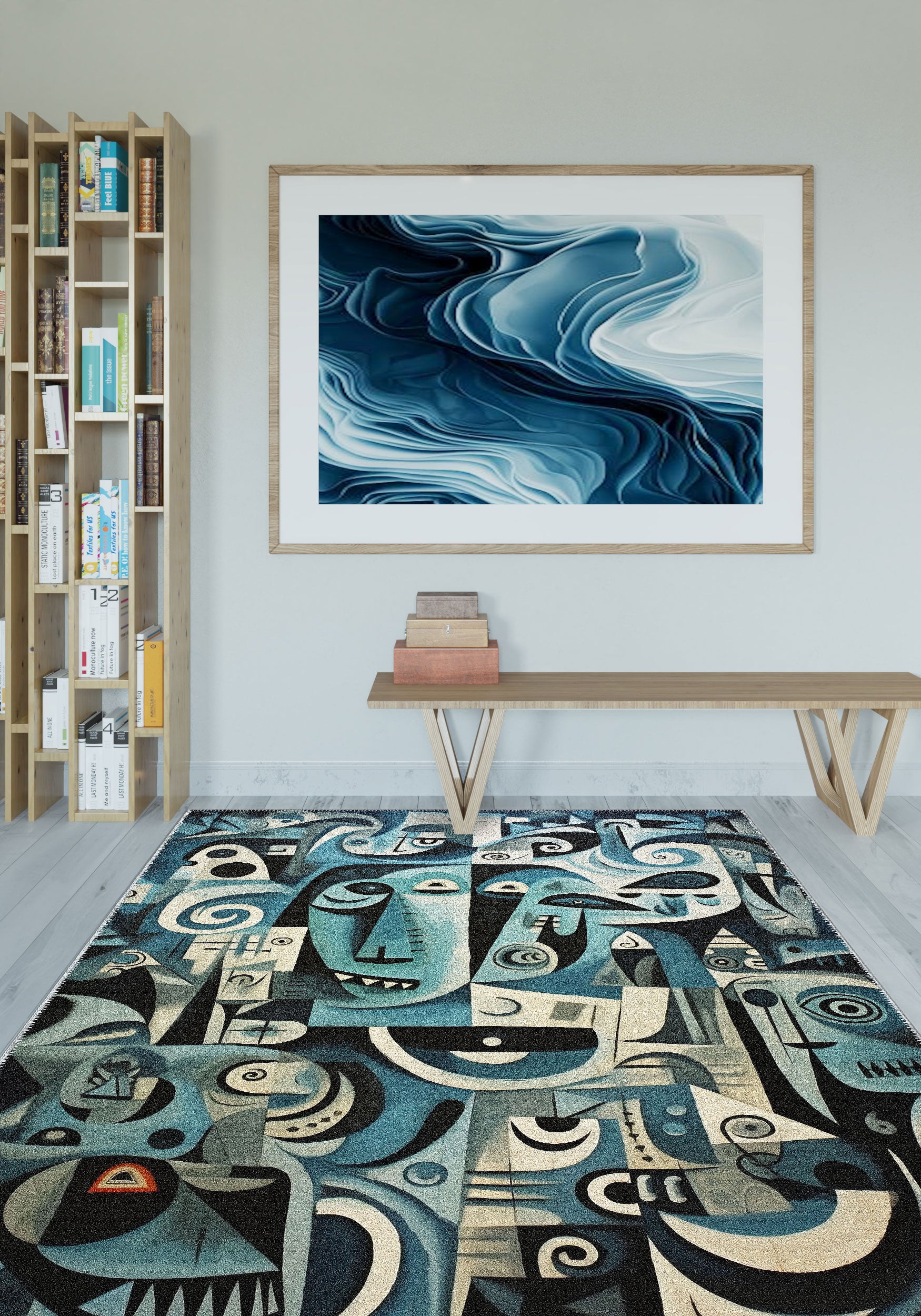 - Versatile Aesthetic: Its cool blue tones and artistic design make it a great fit for a variety of interior styles, from modern to eclectic.
