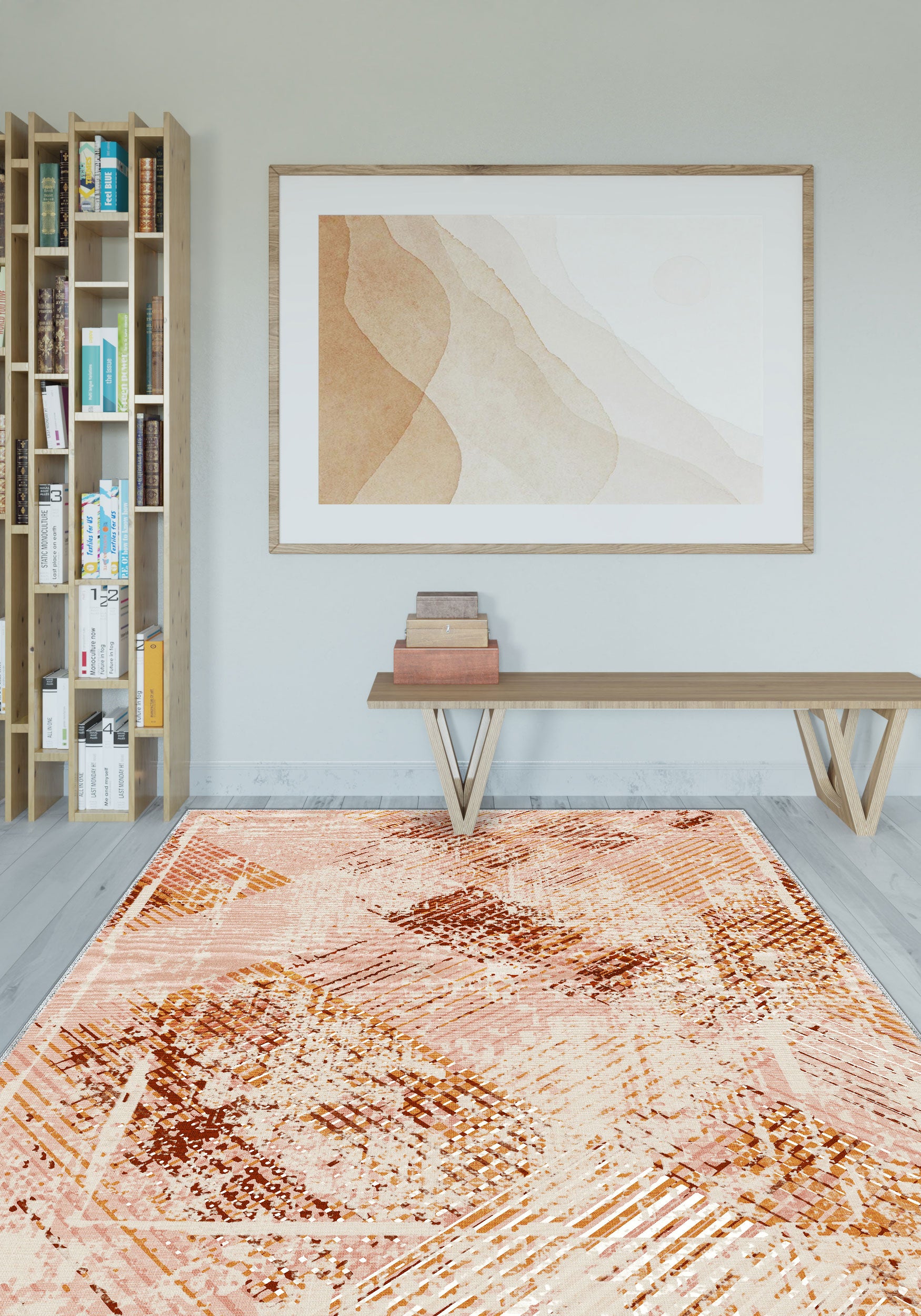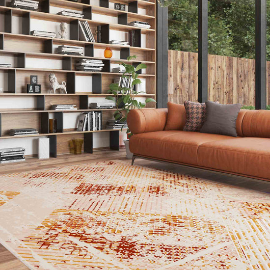 - Eclectic: The warm, energetic color and abstract design make this rug a perfect fit for eclectic interiors, where bold patterns and colors are embraced.