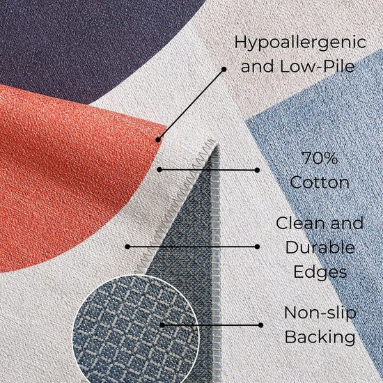 All our rugs are crafted from premium quality materials, ensuring a blend of durability and style. Machine washable for incredibly easy maintenance and cleaning, our rugs are designed with a low-pile structure, making them perfect for high-traffic areas. They come with a non-slip backing, ensuring they stay securely in place without the need for extra pads. Our rugs are lint and dust-free and feature anti-allergic properties, making them an excellent choice for children's rooms and pet-friendly homes. With proper care, these long-lasting rugs maintain their quality and vibrant colours throughout the year.