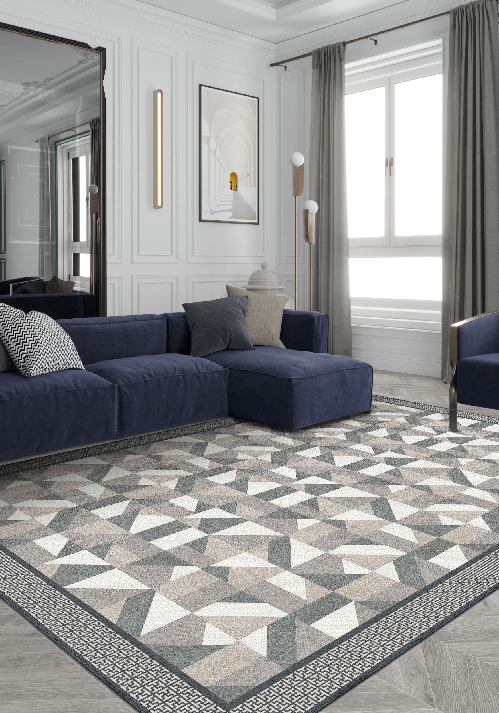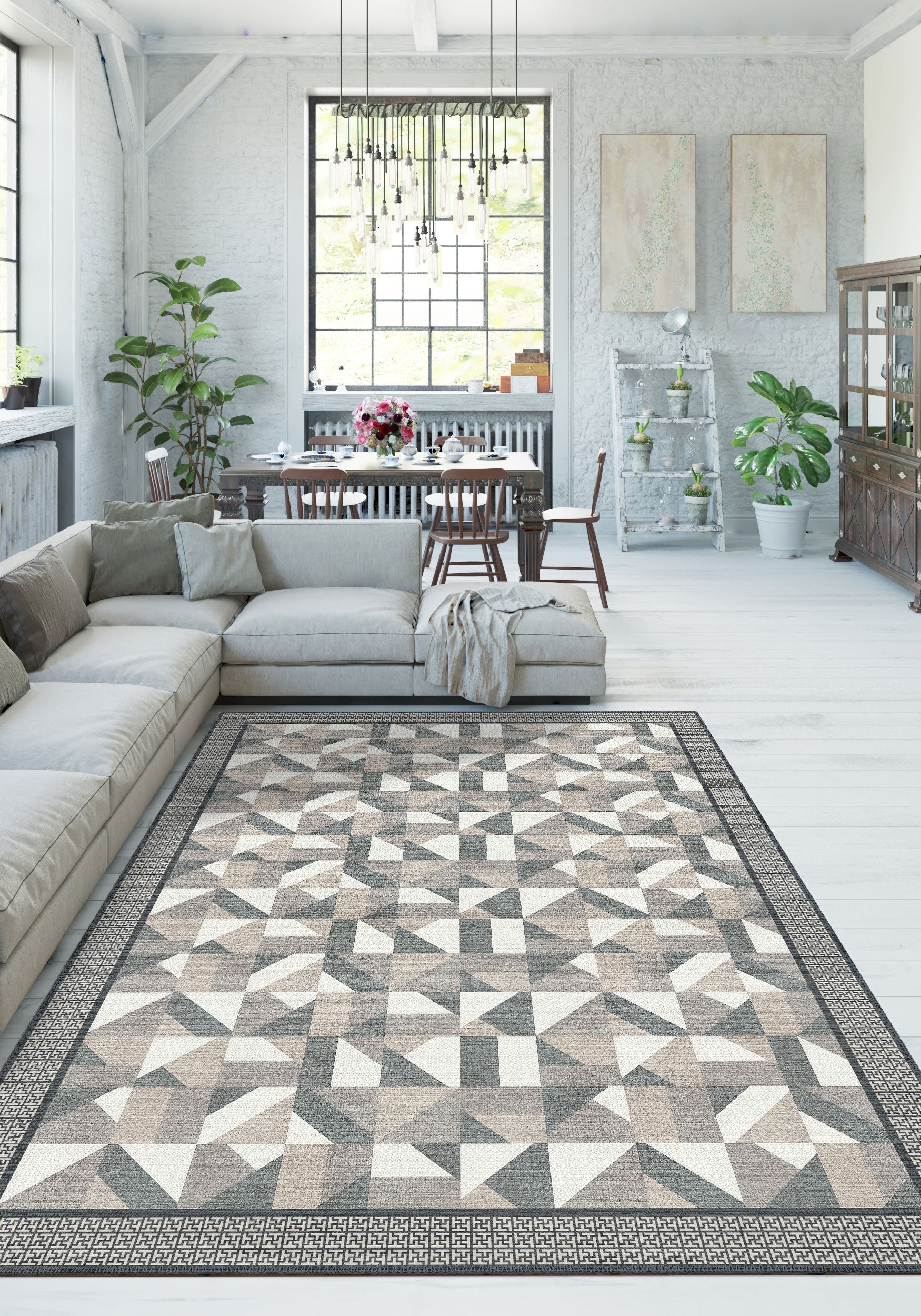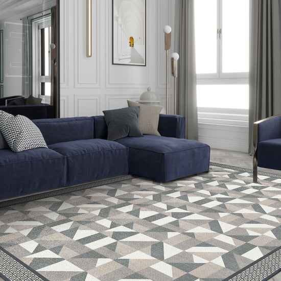 Transform your living space with the Brooke Geometric Grey Rug. Featuring a sophisticated geometric design in versatile grey tones, this rug adds a contemporary touch to any room. Its eye-catching pattern and subtle color palette make it an ideal choice for modern and minimalist interiors alike.