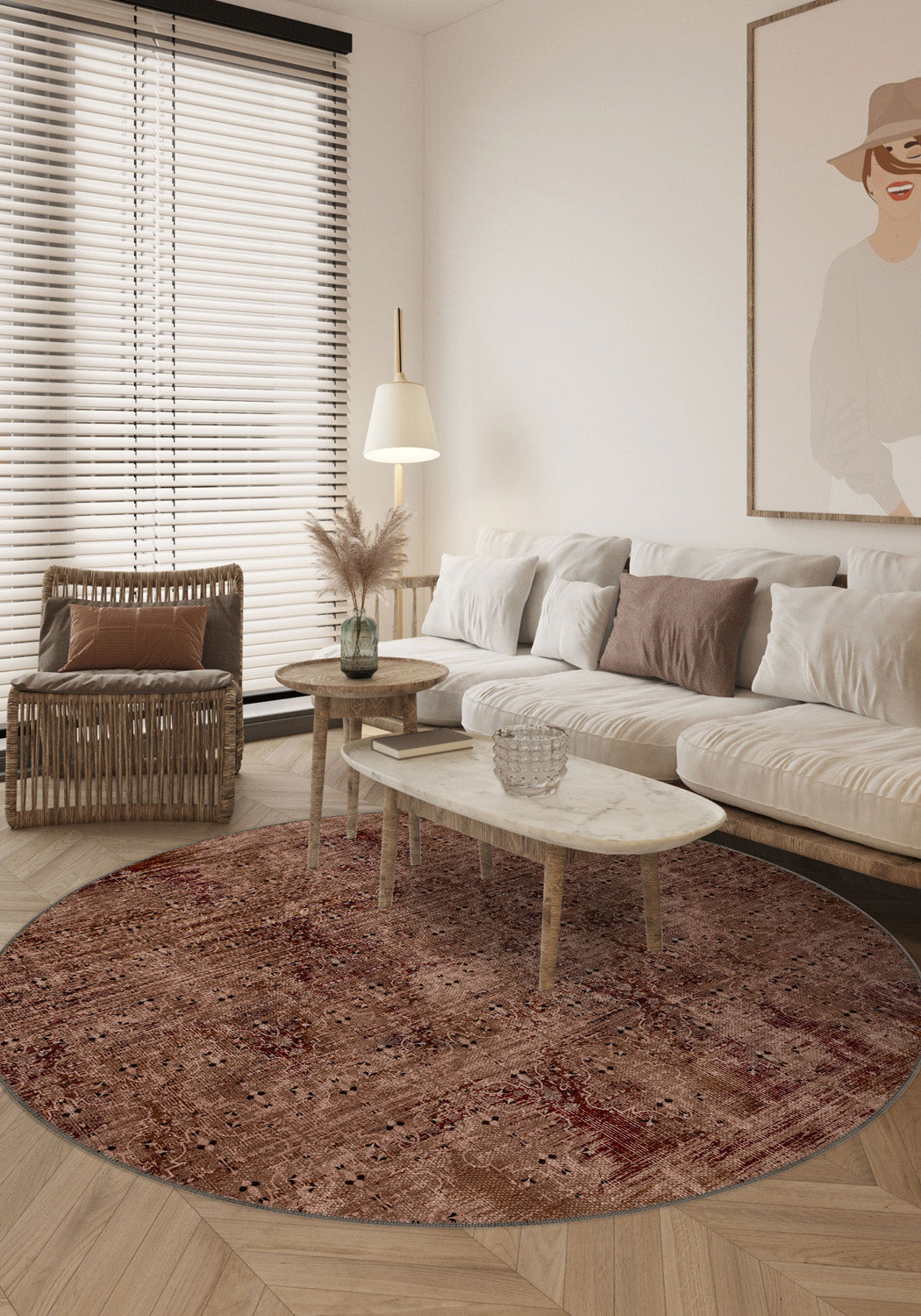 The Bryndar Natural Vintage Rug blends understated sophistication with a distressed, time-worn aesthetic. Featuring muted earthy tones of beige, brown, and hints of deep red, this rug evokes a sense of warmth and character. The delicate faded pattern adds a vintage charm, making it a versatile piece that complements both traditional and contemporary interiors.