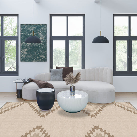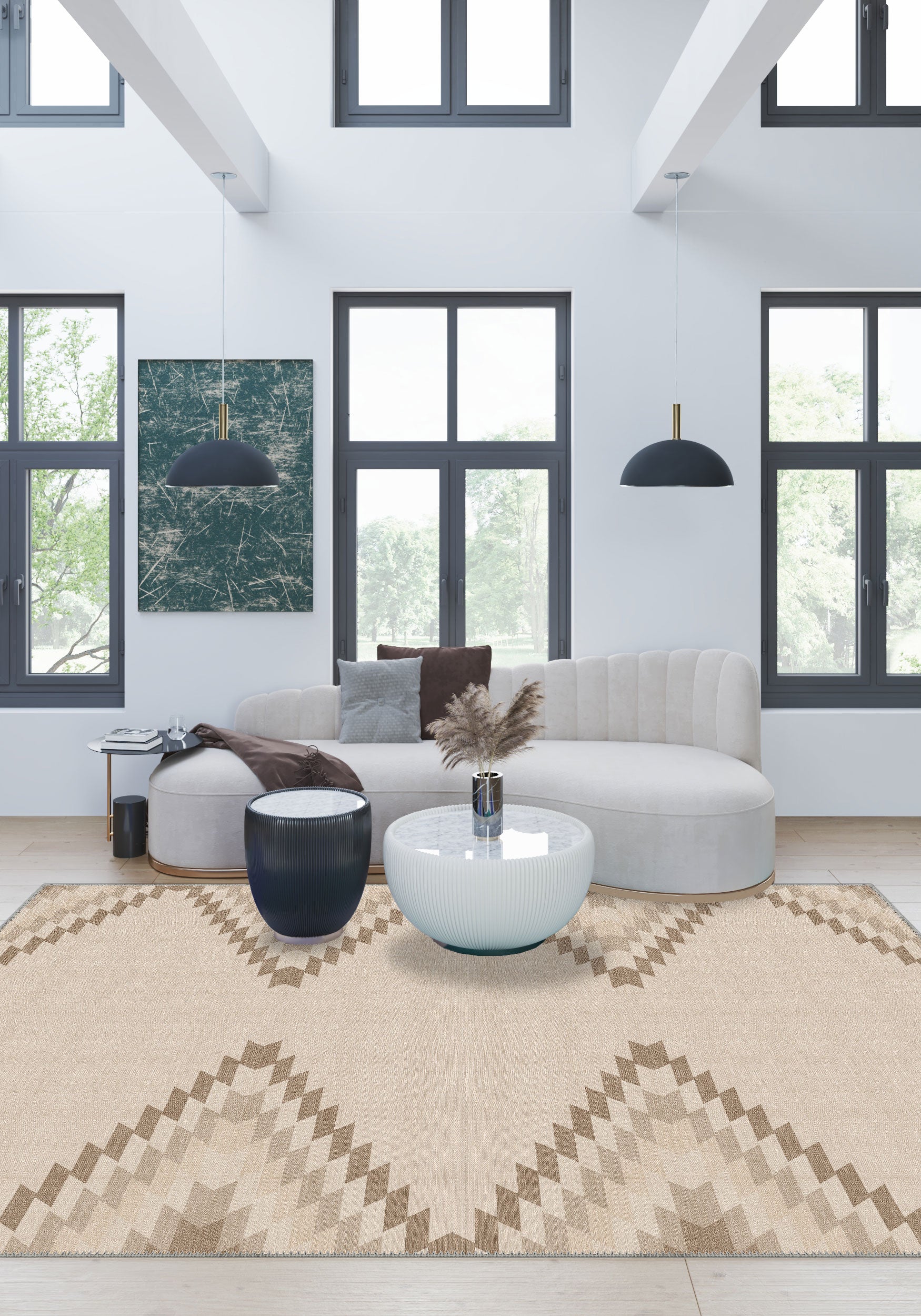 The Cadmus Geometric Light Brown Rug blends subtlety with modern geometric patterns, creating a serene and versatile foundation for any room. Its soft light brown palette is complemented by striking zigzag patterns that add texture and depth without overpowering the space. This rug offers a perfect balance between modern aesthetics and neutral tones, making it an ideal choice for a wide range of interior styles.