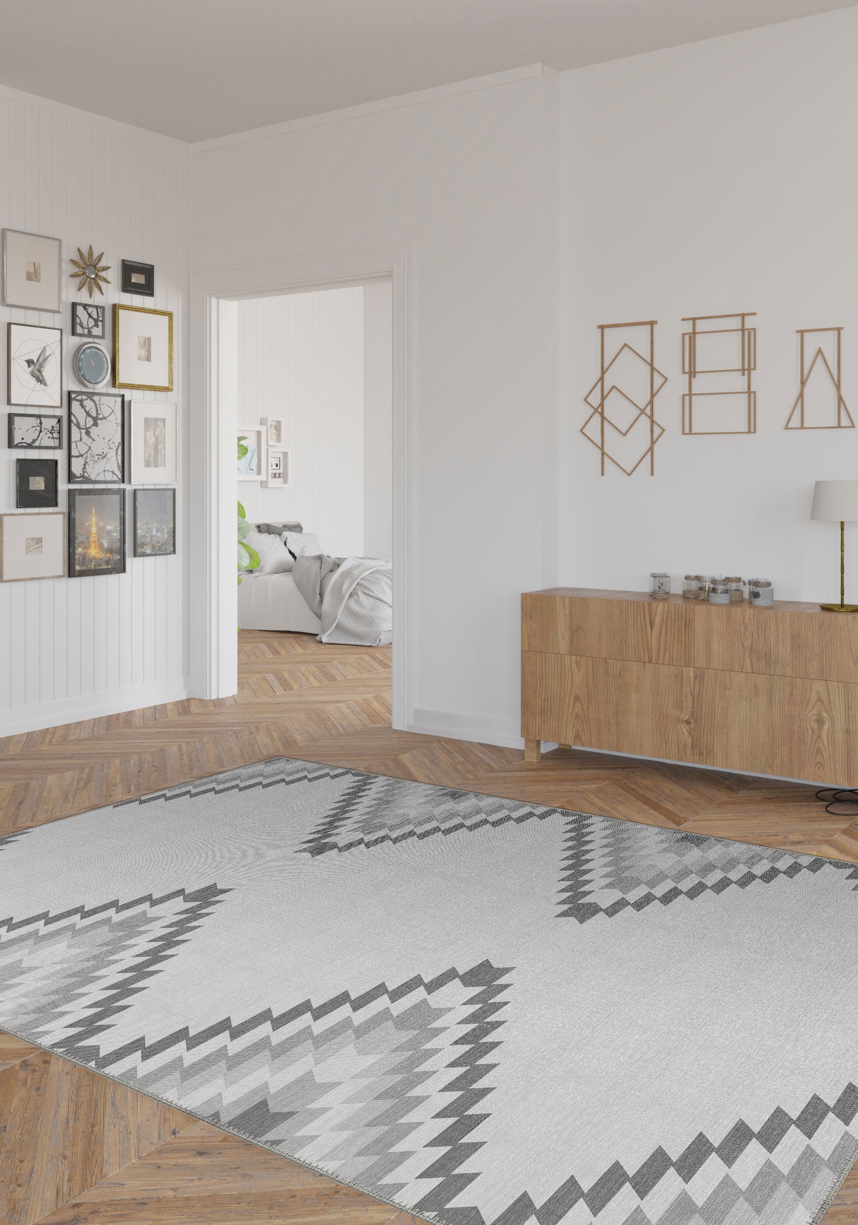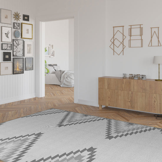 - Scandinavian: The soft grey tones and geometric design align beautifully with Scandinavian aesthetics, bringing warmth and subtle pattern to the space.