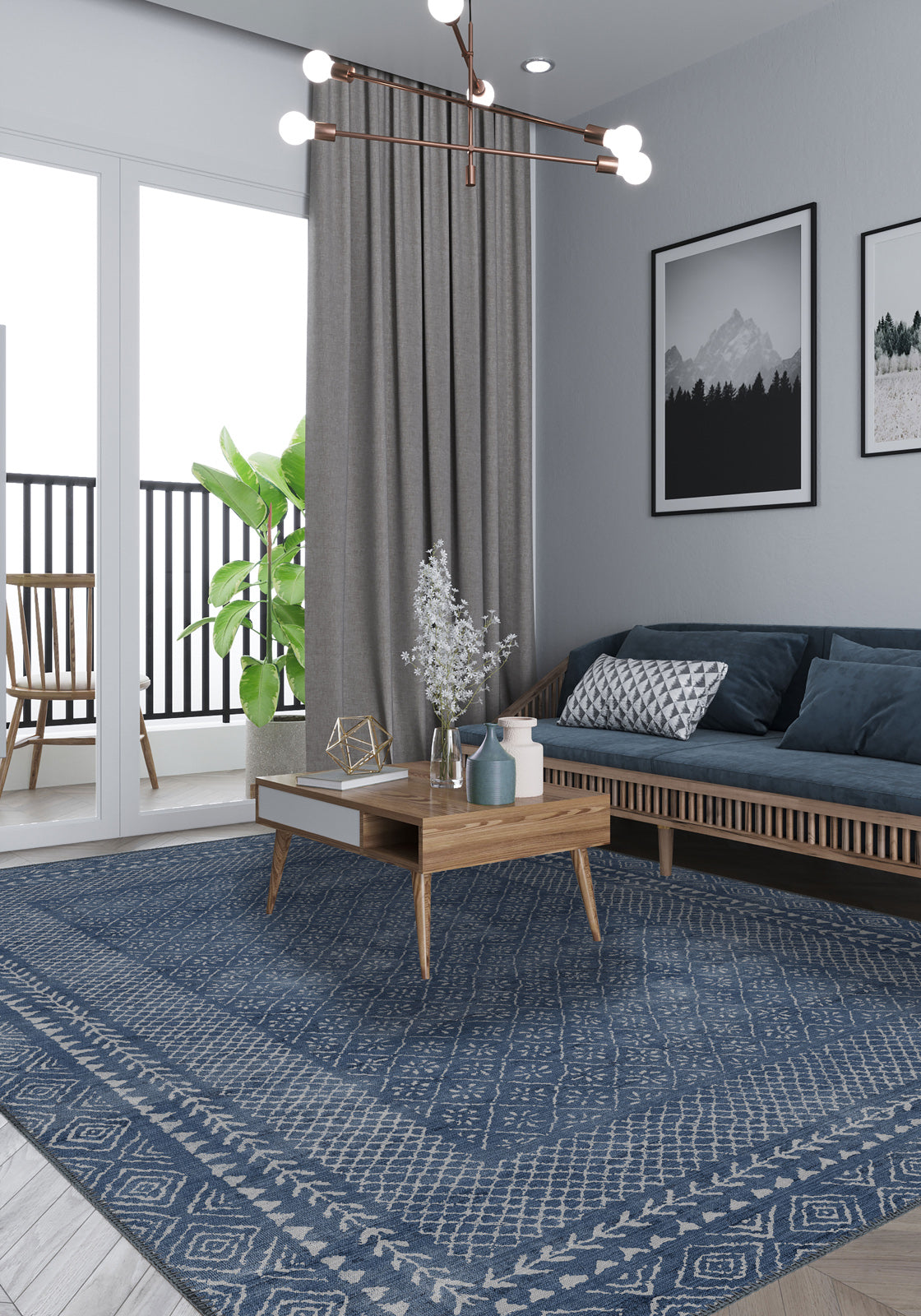 The Calyra Navy Modern Rug adds character and functionality to multiple spaces in your home: