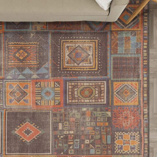 Cassian Boho Washable Rug – Bold Patchwork, Vibrant Colors, and Easy Maintenance