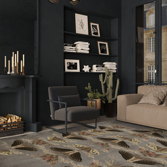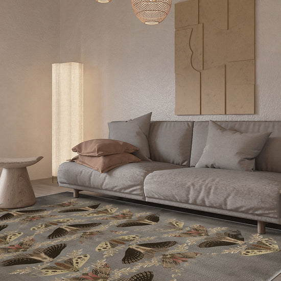 - Nature-Inspired Design: The Celestia rug showcases an enchanting moth pattern, adding a whimsical, organic touch to any room.
