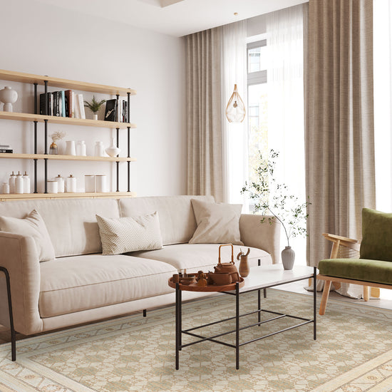 - Timeless Appeal: This rug's vintage look, combined with its modern color palette, allows it to fit seamlessly into both contemporary and classic homes. The light, neutral tones ensure it enhances your decor without overwhelming the space.