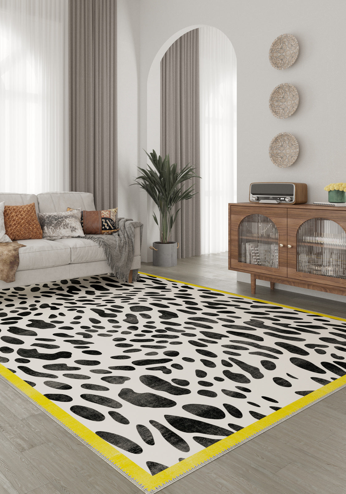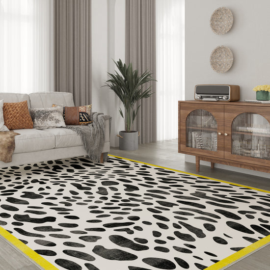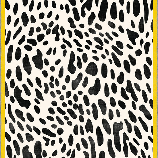 The Dalmatian Yellow Bordered Animal Print Rug merges the timeless black and white dalmatian pattern with a fresh and energetic yellow border. Perfect for spaces that crave a vibrant statement, this rug will infuse your home with playful energy and bold style.