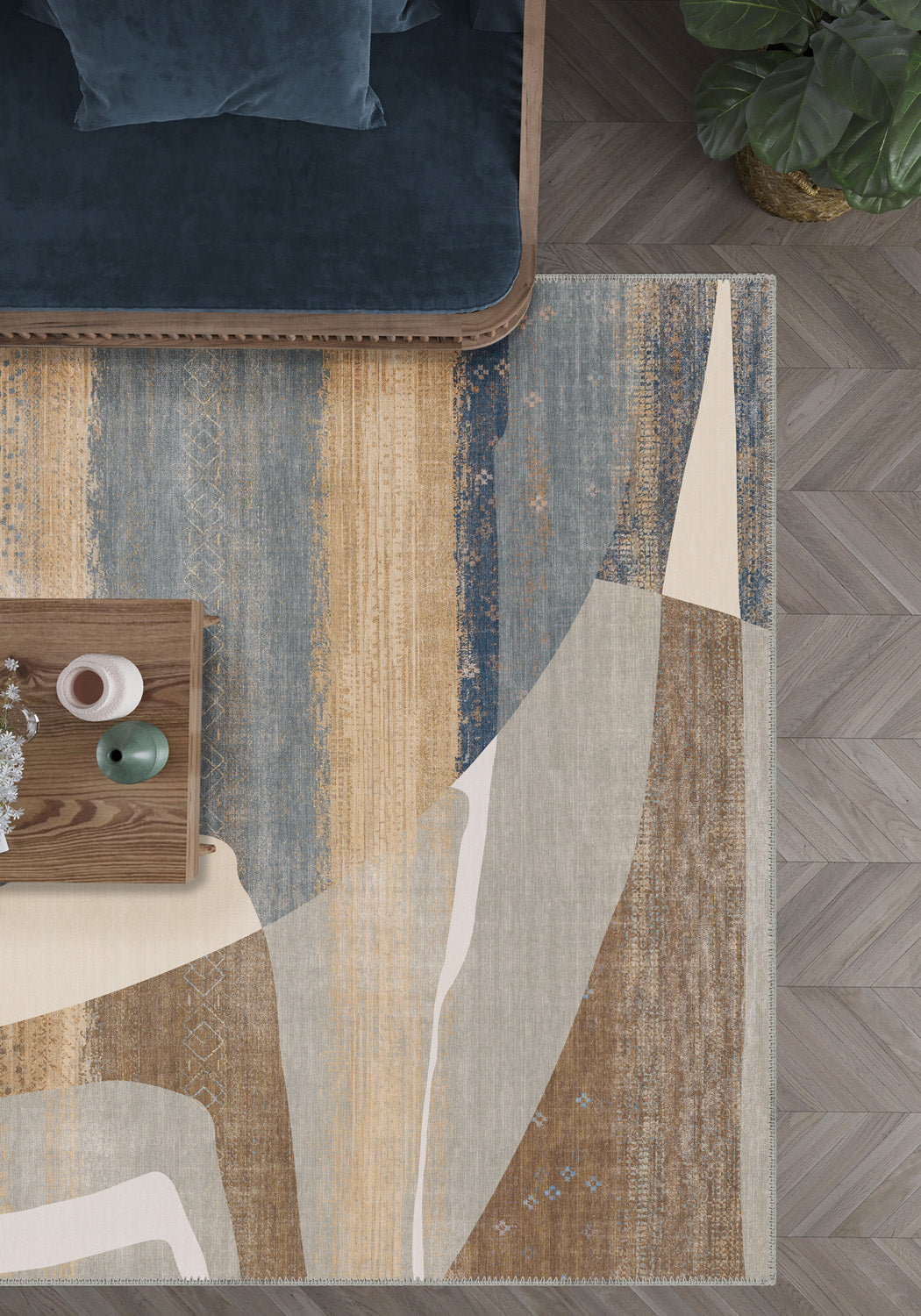 - Earthy Colour Palette: A harmonious mix of beige, brown, and blue tones creates a grounded and inviting look.