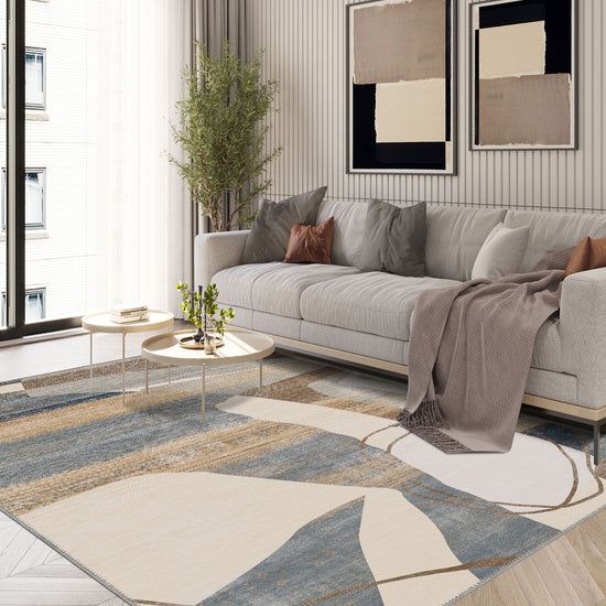Dax Beige Washable Rug – A Blend of Organic Flow and Earthy Tones
