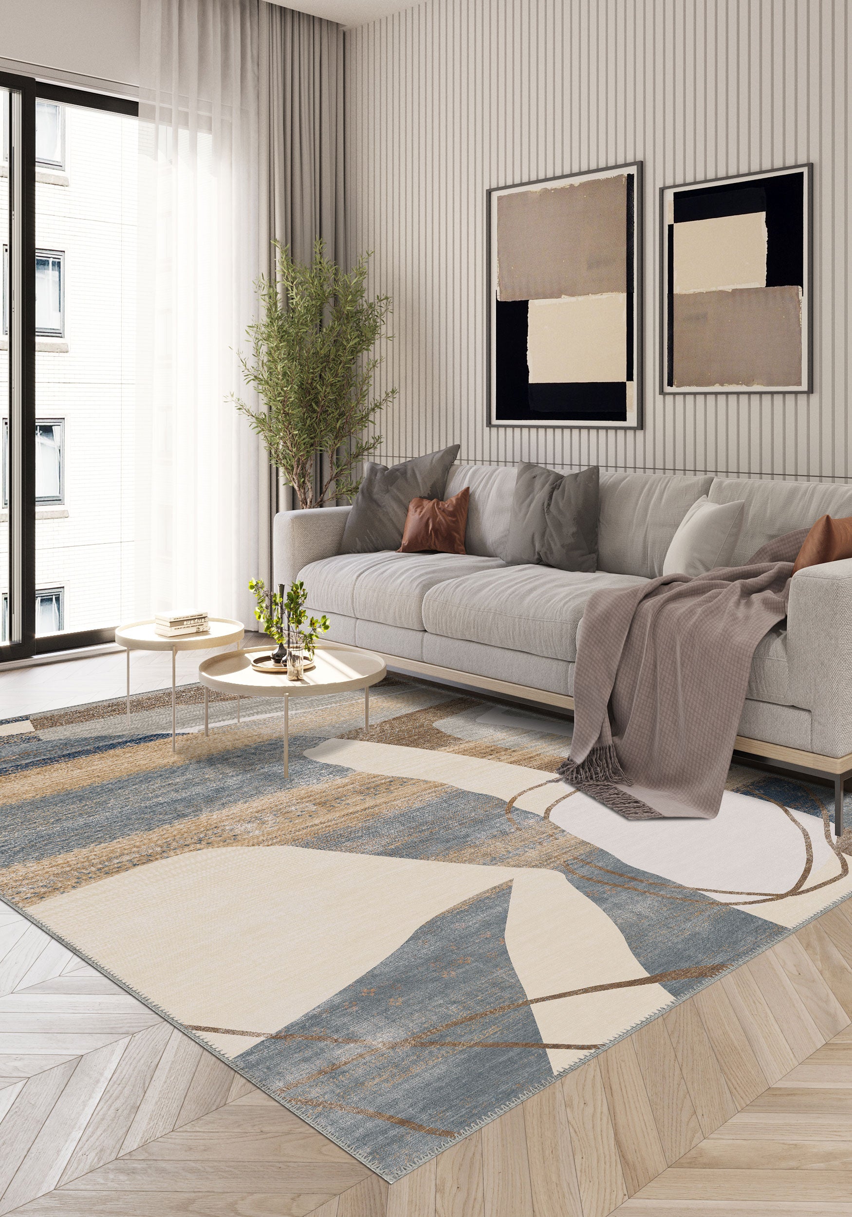 - Modern & Contemporary: The abstract design and subtle colour scheme make this rug an ideal choice for modern homes.