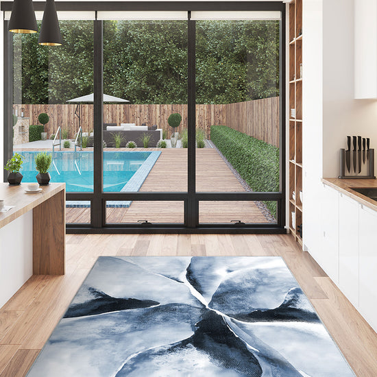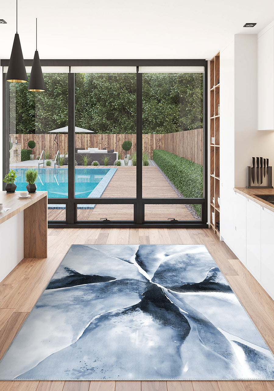 Delyra Blue Abstract Washable Rug – Artistic Elegance for Modern Interiors