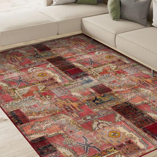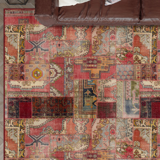 The Eamon Colourful Patchwork Rug is perfect for making a statement in your home. Its vibrant colors and intricate patterns bring life to any room, while its durable and machine-washable construction ensures it stays beautiful for years to come. Ideal for those who appreciate unique, artistic designs combined with everyday practicality.