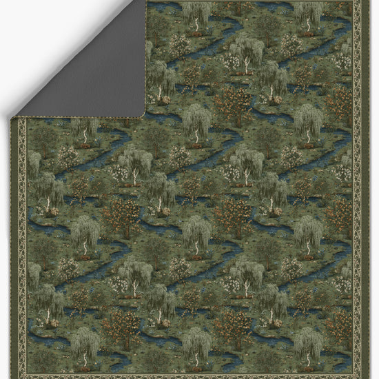 The Elowen Forest Green Blanket Bedspread feels like stepping into a storybook landscape. Layered woodland scenes unfold across a deep forest green base, with winding rivers, delicate trees, and softly detailed foliage creating a rich, immersive design. It’s intricate yet calming, decorative yet grounded.