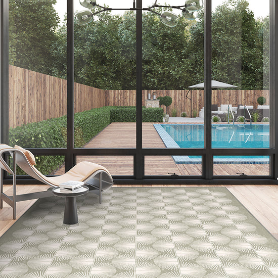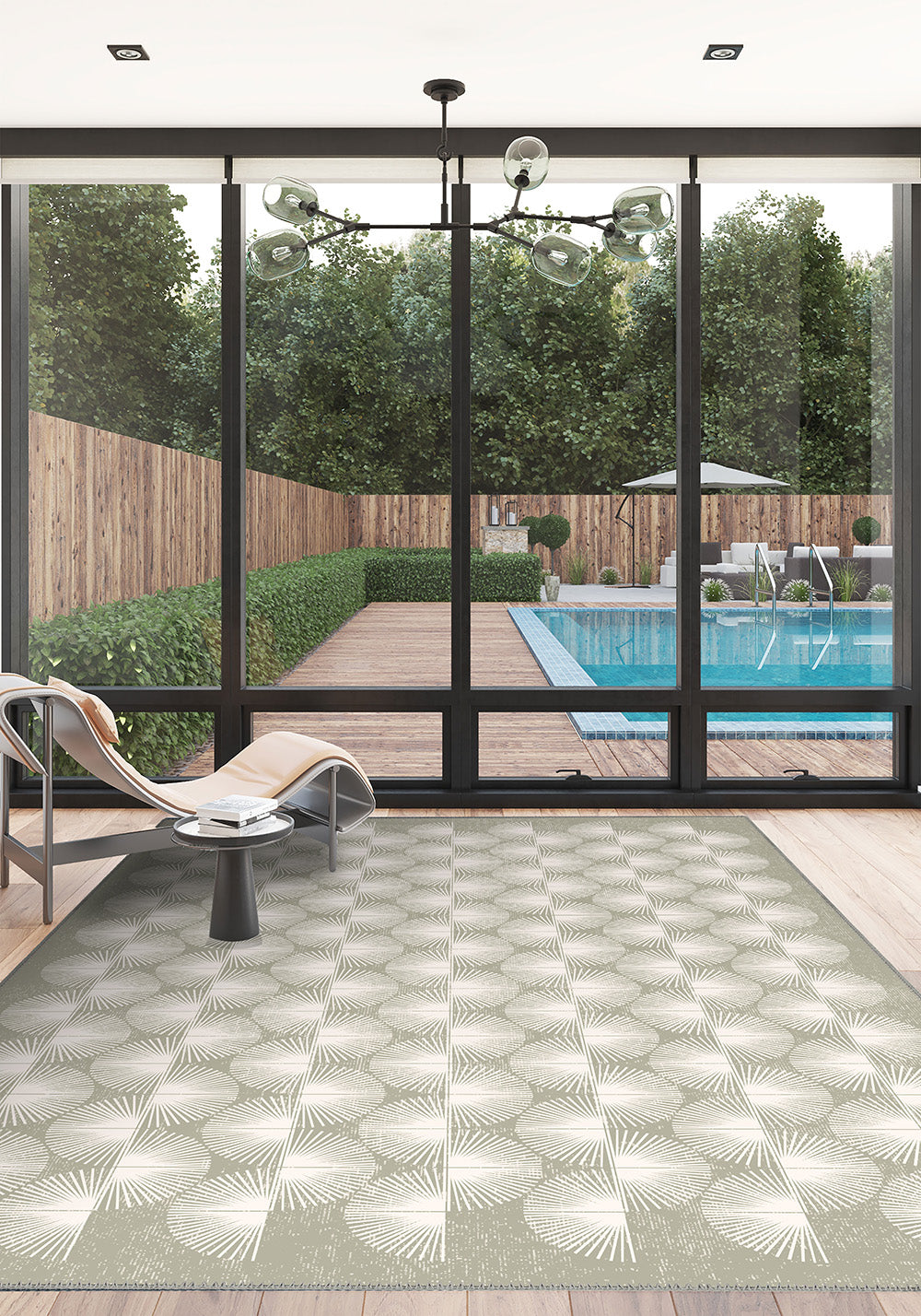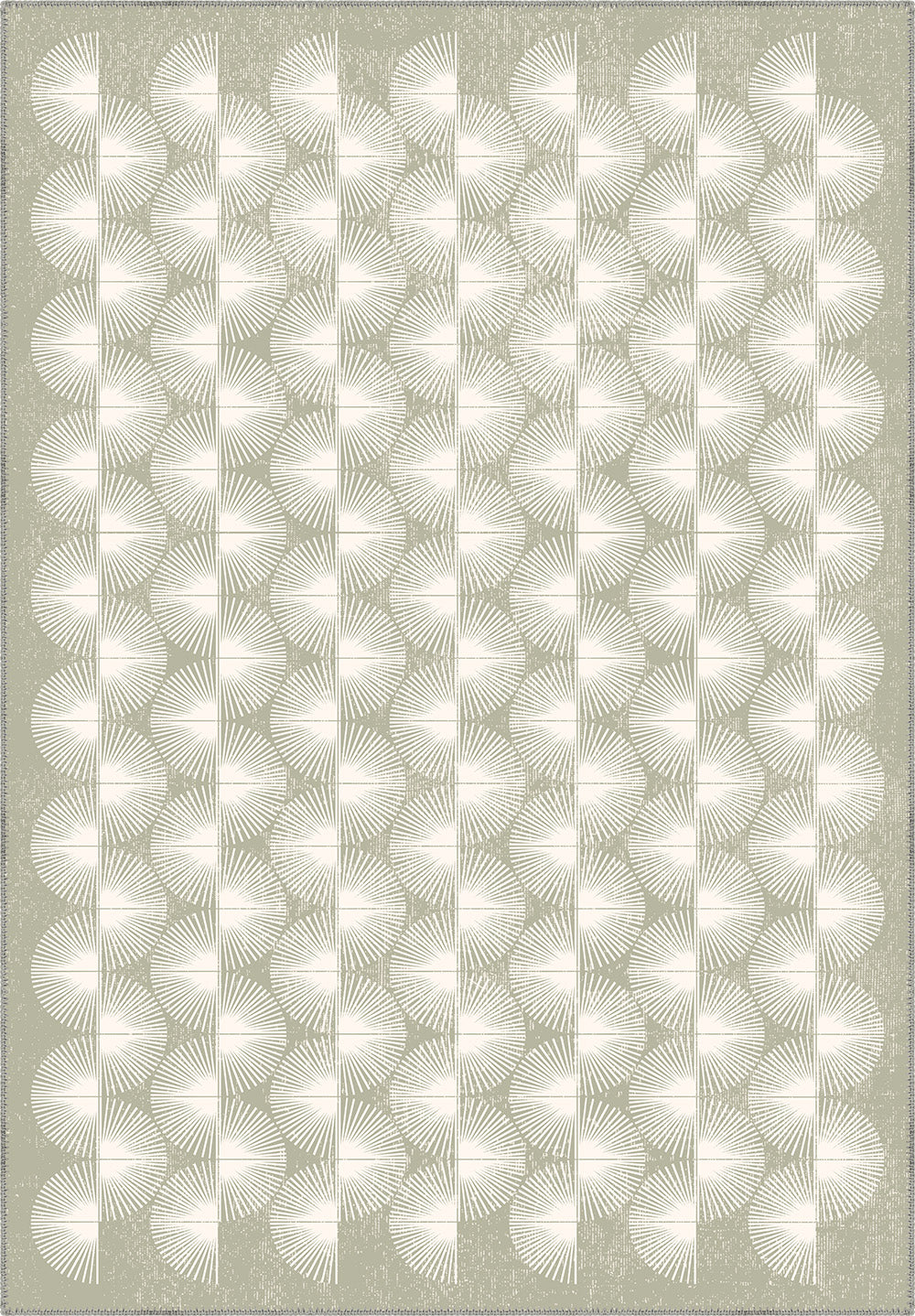 Add a touch of modern elegance to your living space with the Elysandra Sage Green Geometric Rug. This rug showcases a sophisticated Art Deco-inspired fan pattern in a soothing sage green tone, bringing an upscale look to any room with its timeless design and calming color palette.