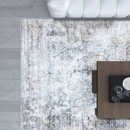 Ethan Brown Blue Erased Rug – A Perfect Fusion of Vintage Charm and Modern Elegance