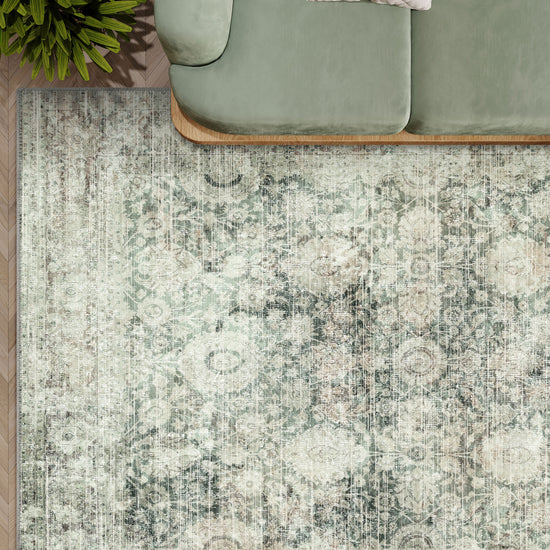 Ethan Green Erased Rug – Vintage Elegance Meets Contemporary Style