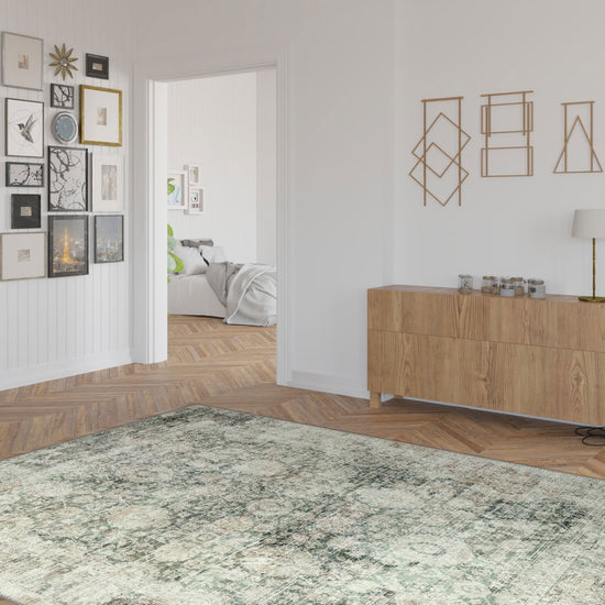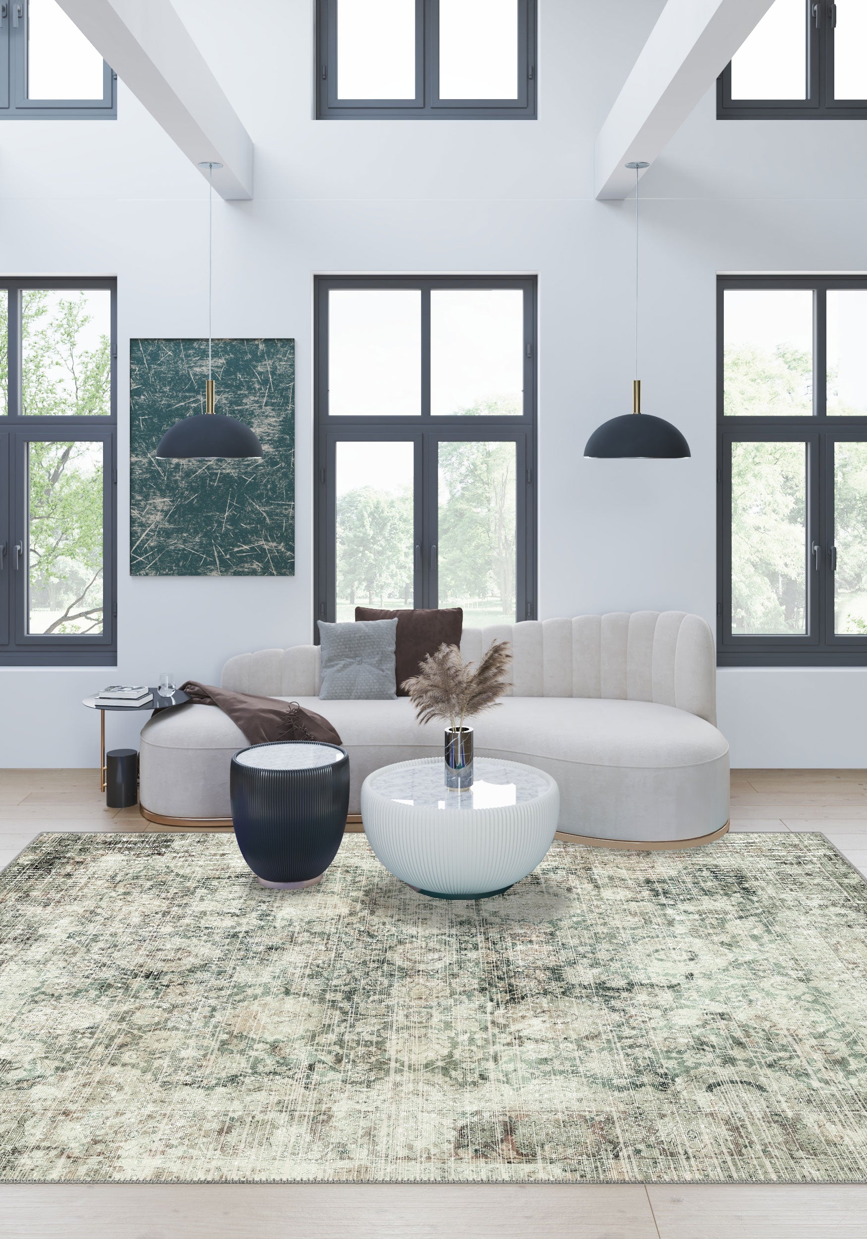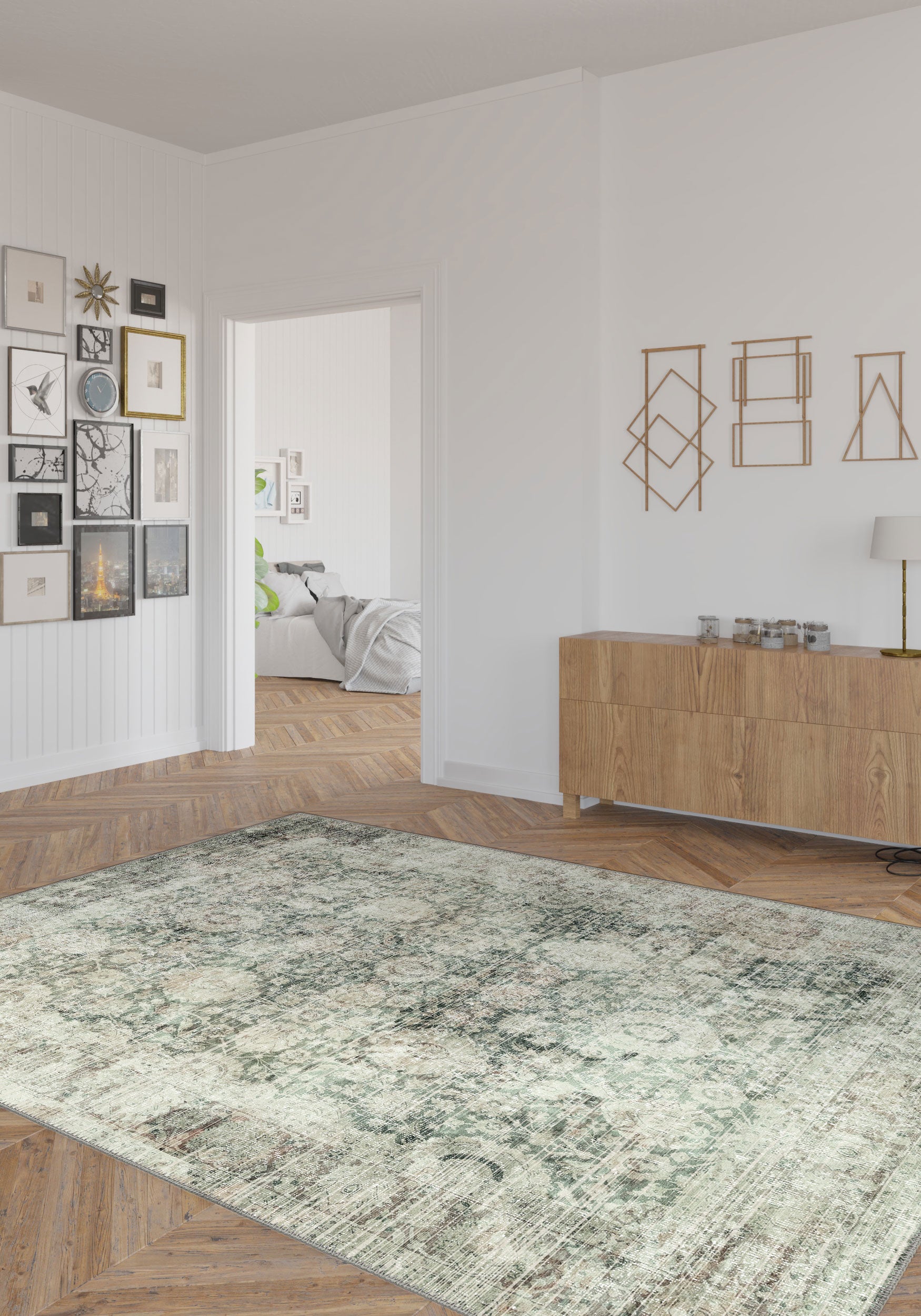 Ethan Green Erased Rug – Vintage Elegance Meets Contemporary Style
