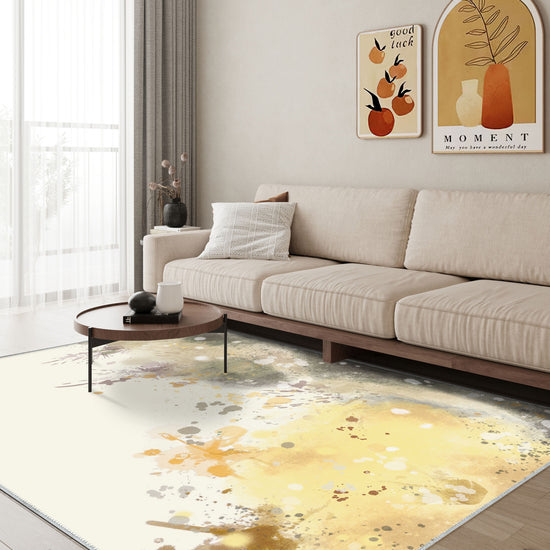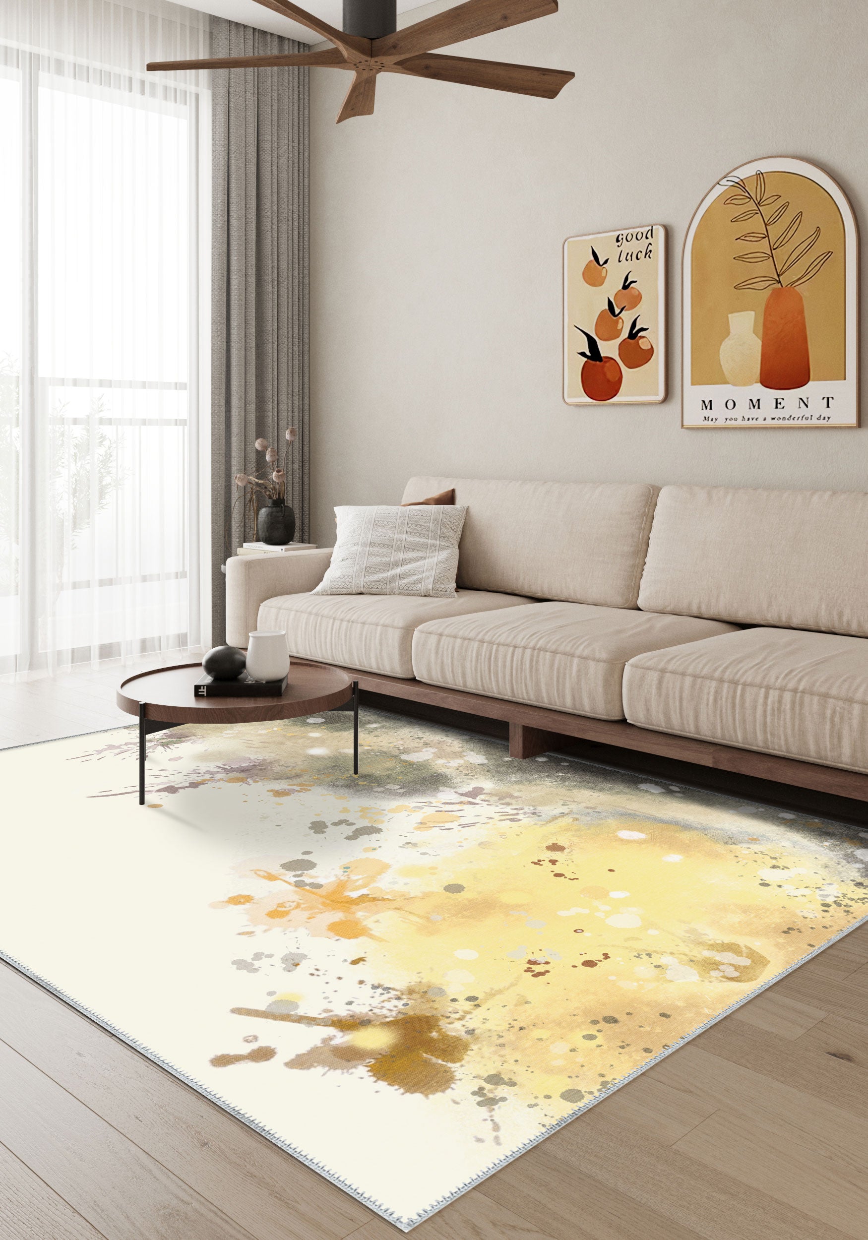 - Abstract Watercolor Splashes: The subtle blend of yellow, cream, and beige hues creates a calming, watercolor-like effect that’s both artistic and inviting.