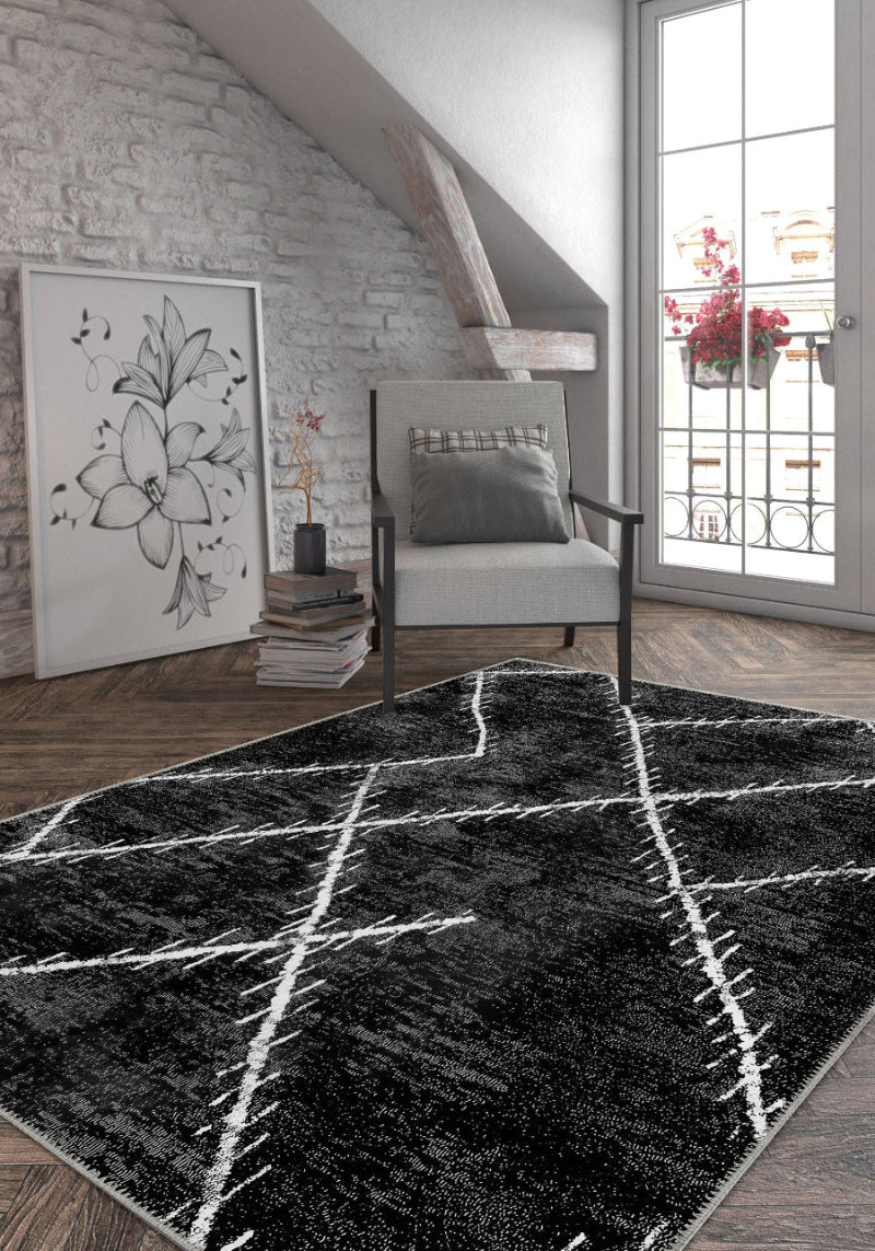 Freya Black Geometric Rug – Modern Elegance Meets Artistic Flair