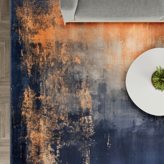 - Abstract Art-Inspired Design: The blend of blue and orange tones creates a striking contrast, making this rug a work of modern art for your floor.