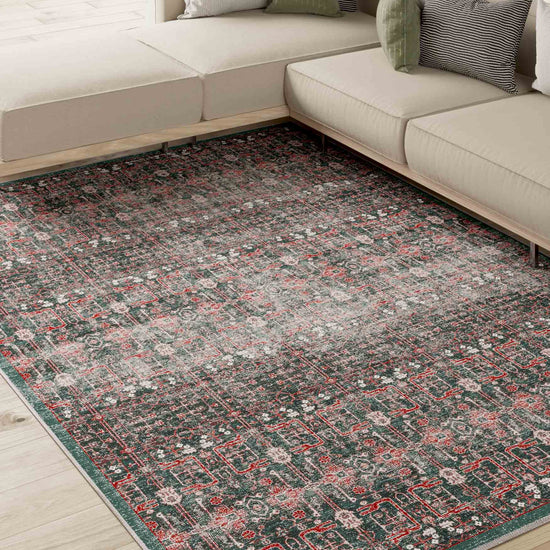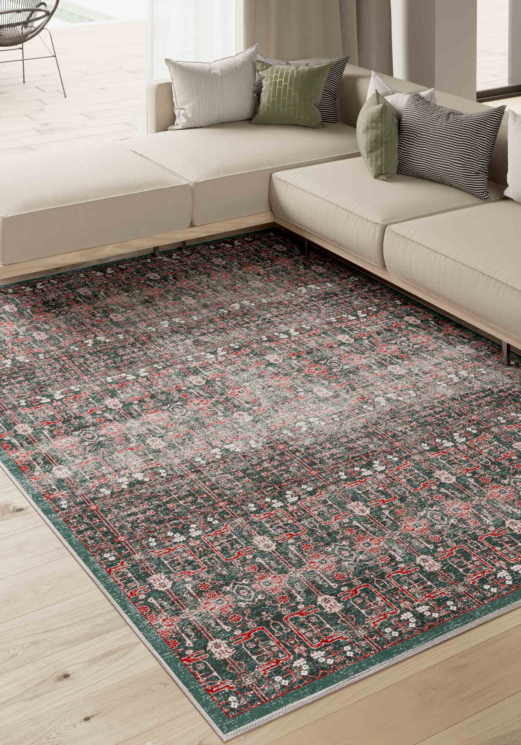 The Gaia Washable Teal Rug combines the timeless beauty of intricate vintage patterns with a rich, dark teal hue that brings an air of elegance to any room. Its deep colour palette exudes a sense of refinement, making it perfect for spaces seeking both style and practicality.