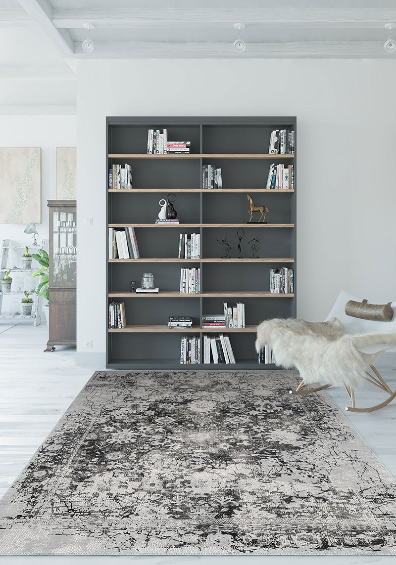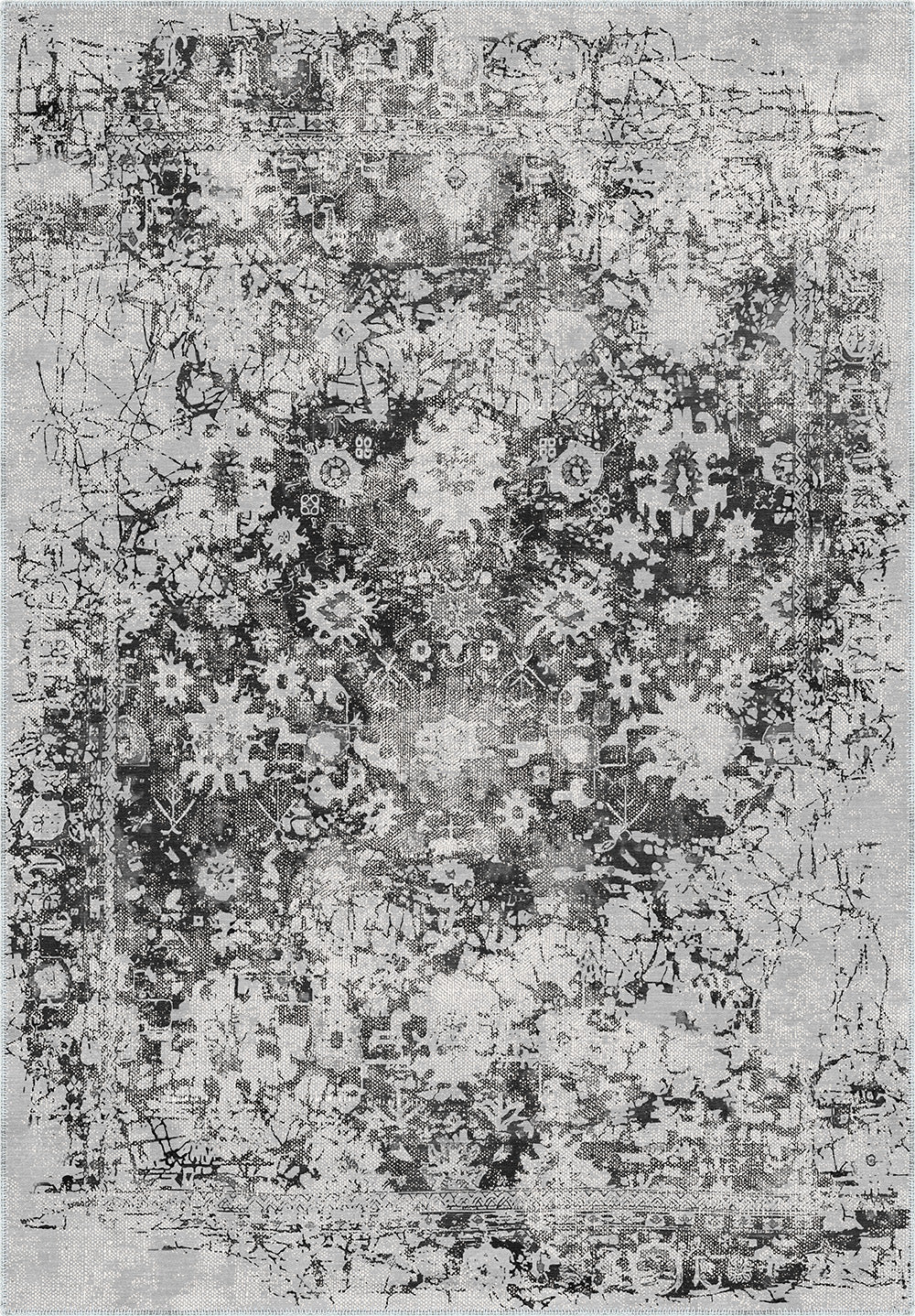 The Galadriel Black Grey Traditional Rug combines classic patterns with a modern black, grey, and white palette, creating a versatile and stylish piece for any room. Its intricate detailing and distressed finish give it an antique charm while fitting effortlessly into contemporary or traditional interiors.