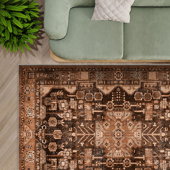 The Gideon Earthy Persian Rug brings classic Persian artistry to life with a rich, earthy color palette. Featuring an intricate medallion design surrounded by ornate detailing, this rug offers a sophisticated blend of brown, beige, and deep coffee hues. Its vintage-inspired charm adds warmth and character to any space, making it a perfect focal point for both traditional and modern interiors.
