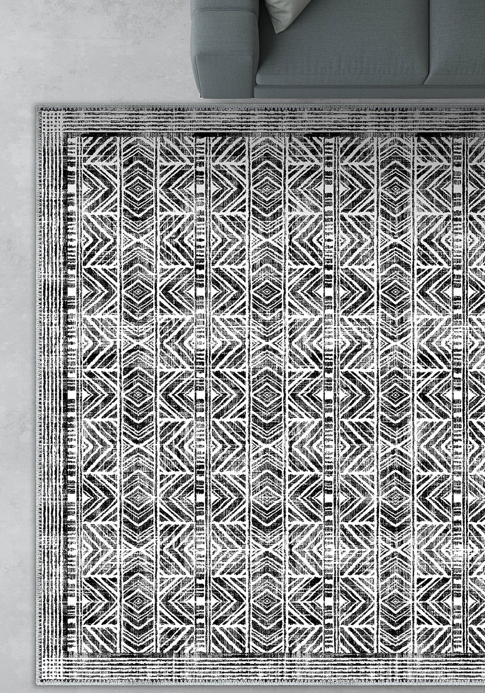 Gilyra Black and White Boho Rug – Modern Geometric Elegance
