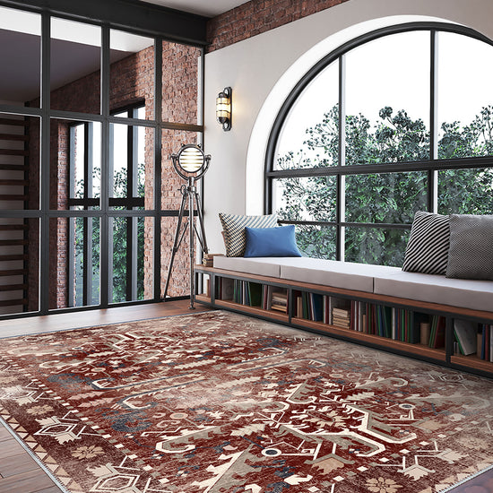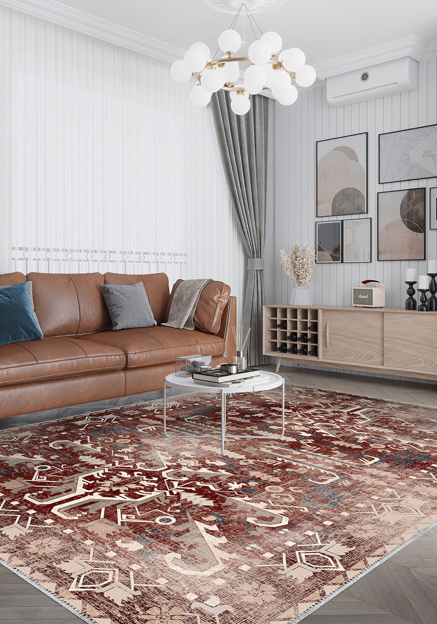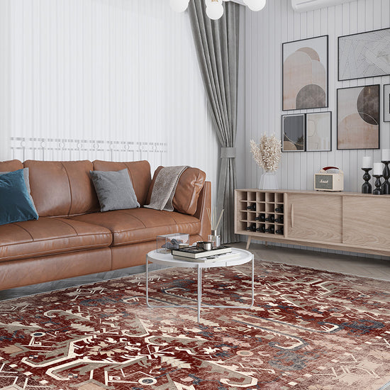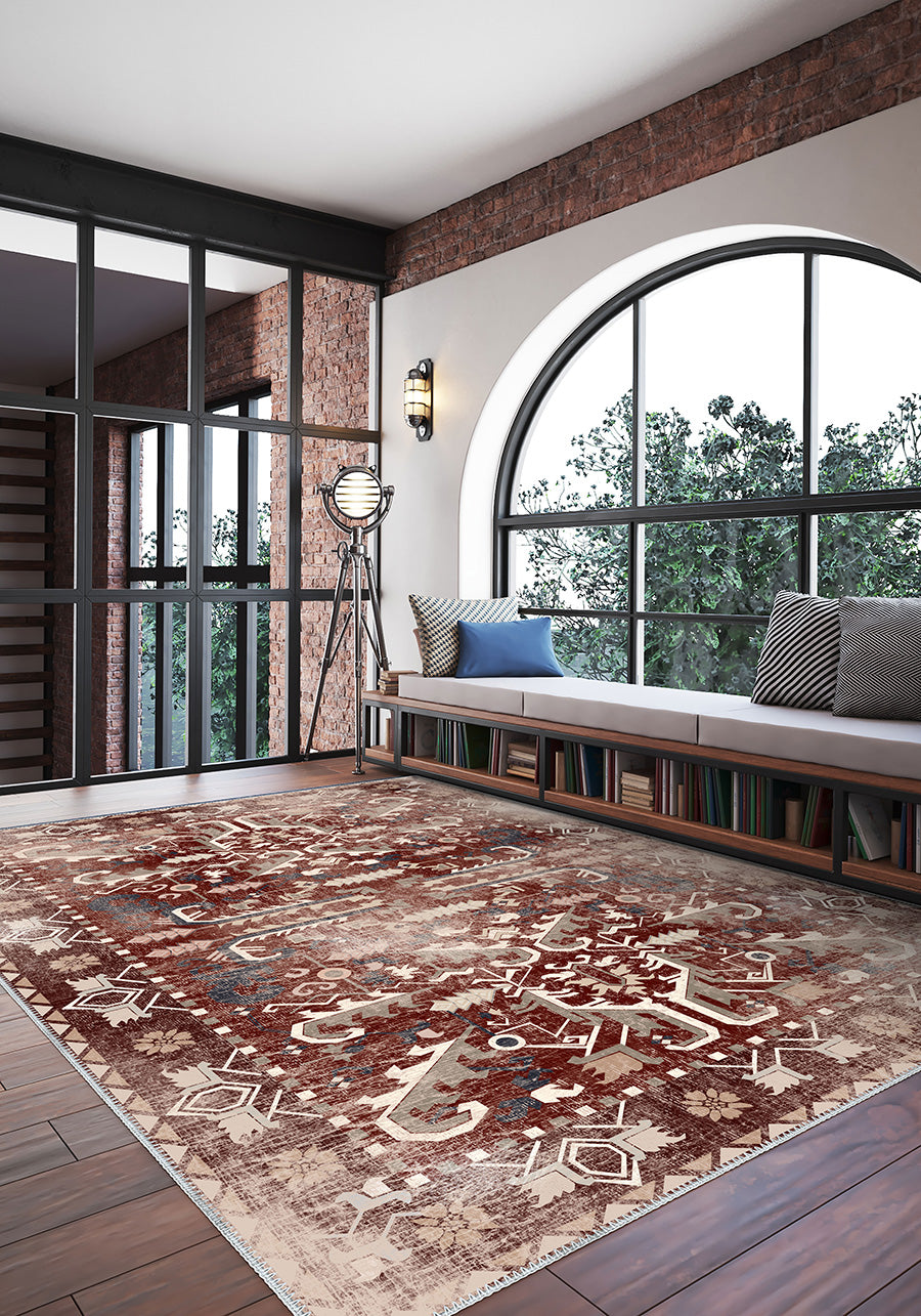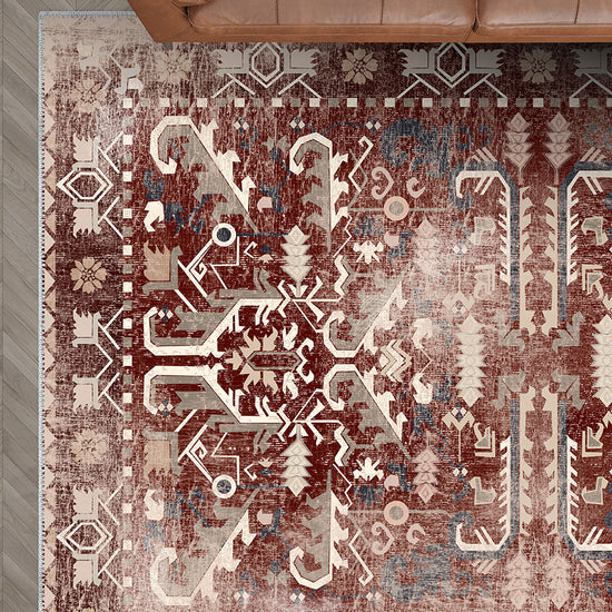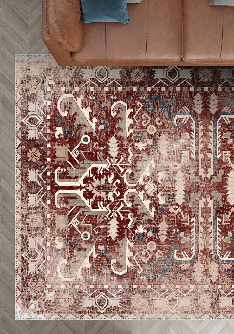 The Grace Erased Burgundy Washable Rug blends deep burgundy tones with intricate patterns and a distressed, erased finish, creating a bold yet sophisticated statement for your space. Its unique design merges traditional motifs with modern practicality, making it a standout addition to any room.