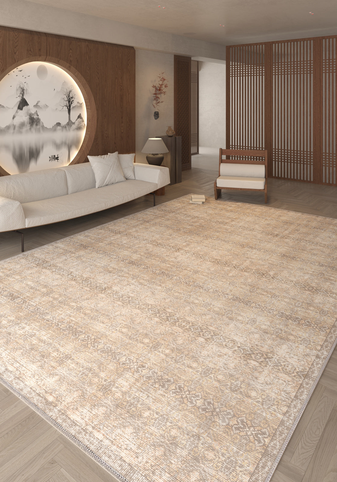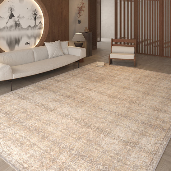 The Grandma Washable Traditional Rug brings timeless elegance to your home with its intricate pattern and soft, neutral hues. This rug perfectly balances the charm of vintage design with the convenience of modern living, making it a versatile addition to both traditional and contemporary spaces.