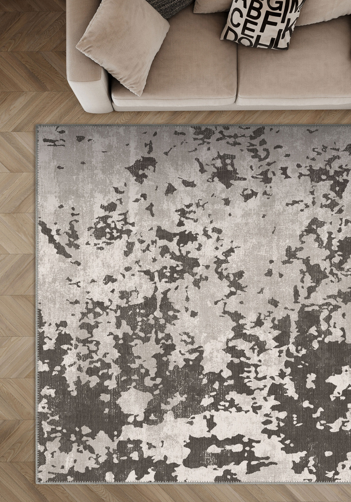 Grant Brown Abstract Washable Rug – Modern Style with Earthy Tones
